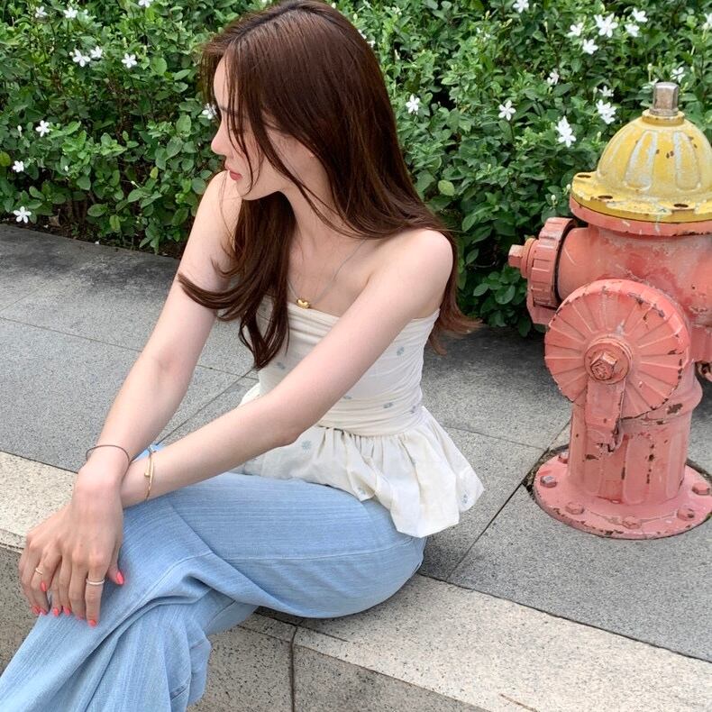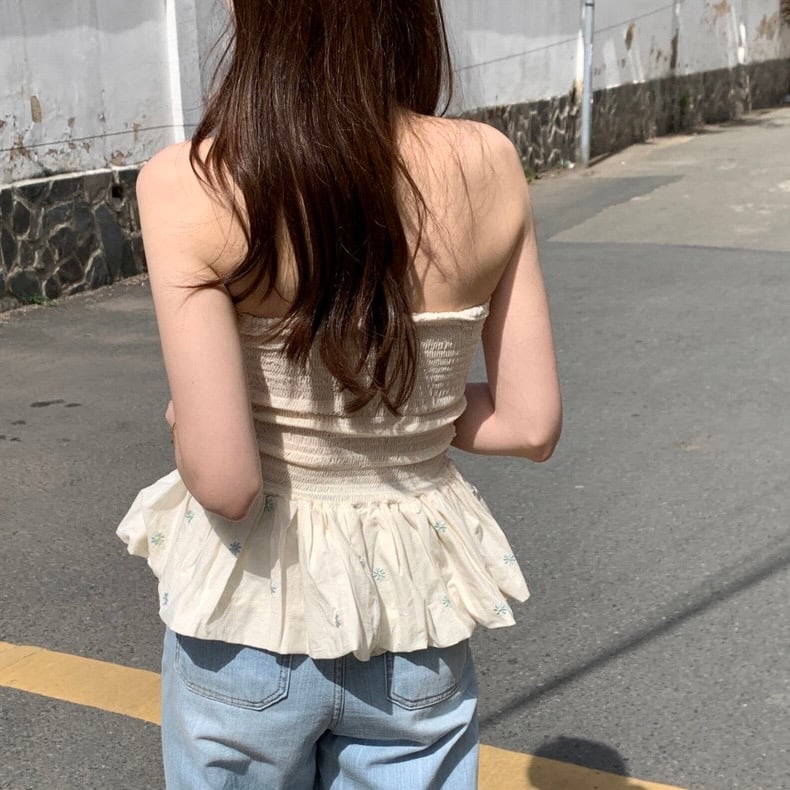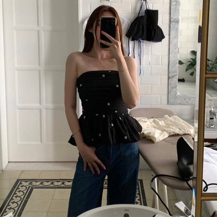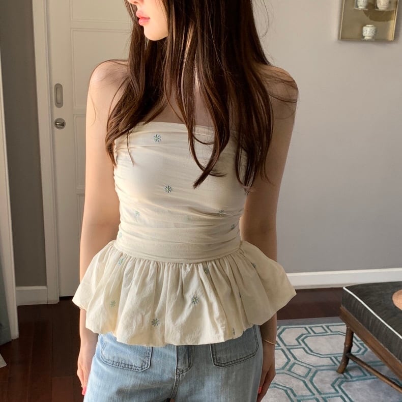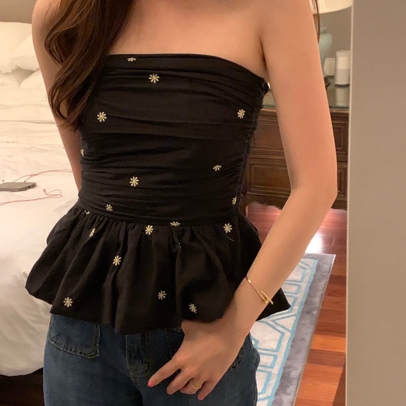 【tops】オフショルダーフラワー柄ぺプラムトップス2色 JF6245