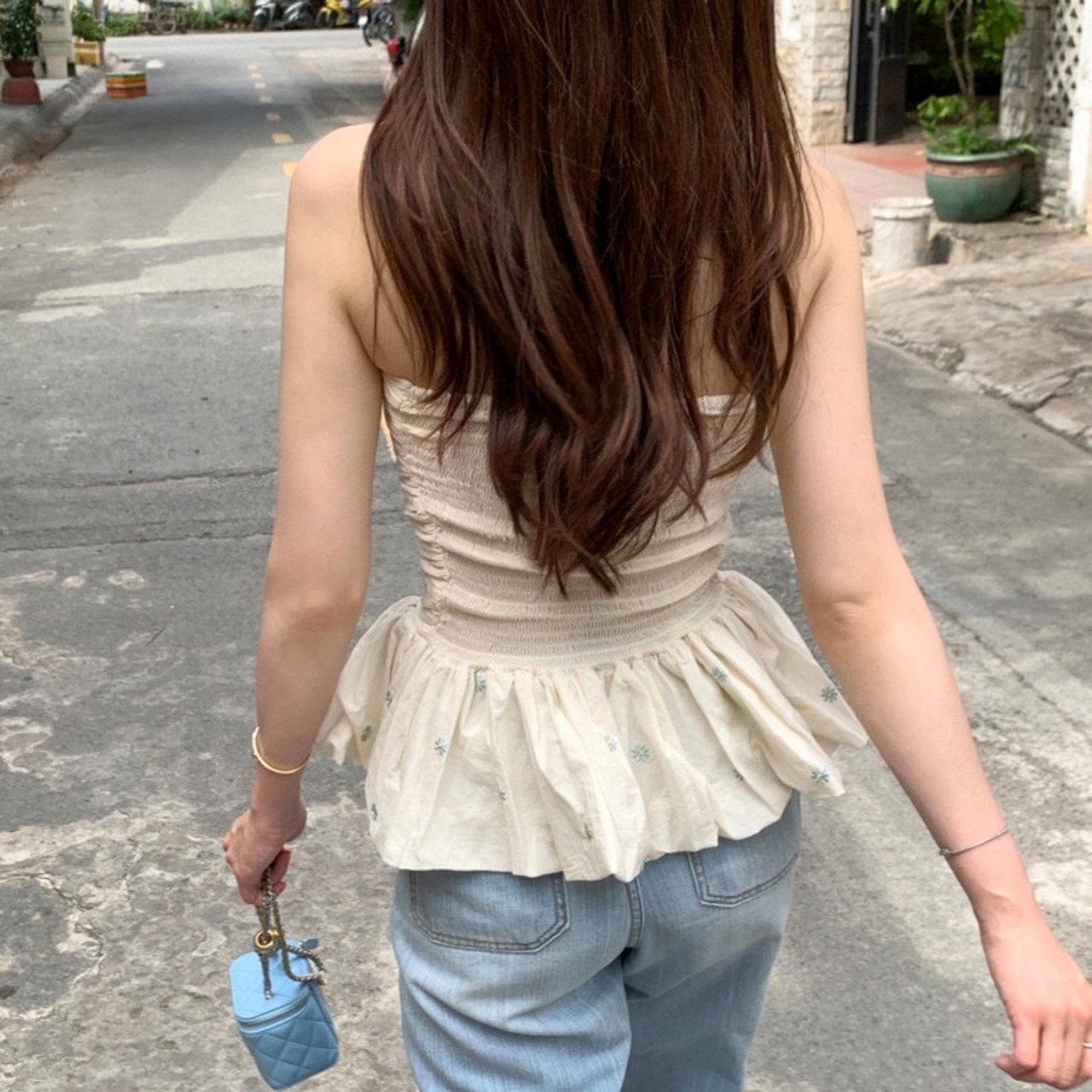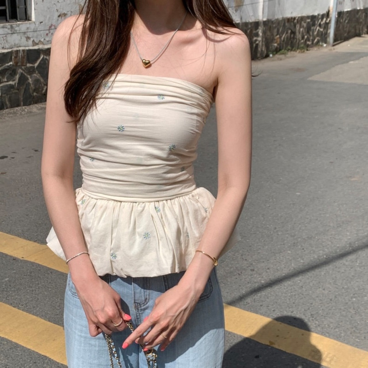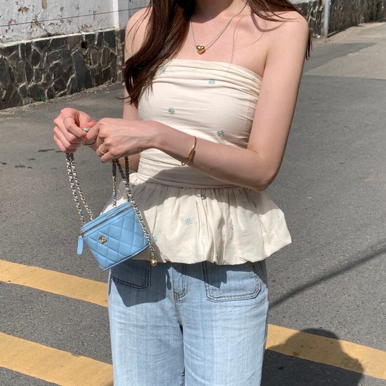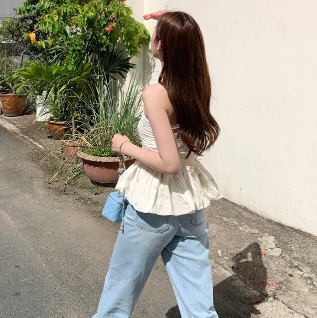 【tops】オフショルダーフラワー柄ぺプラムトップス2色 JF6245