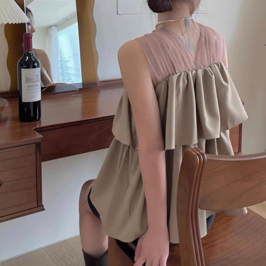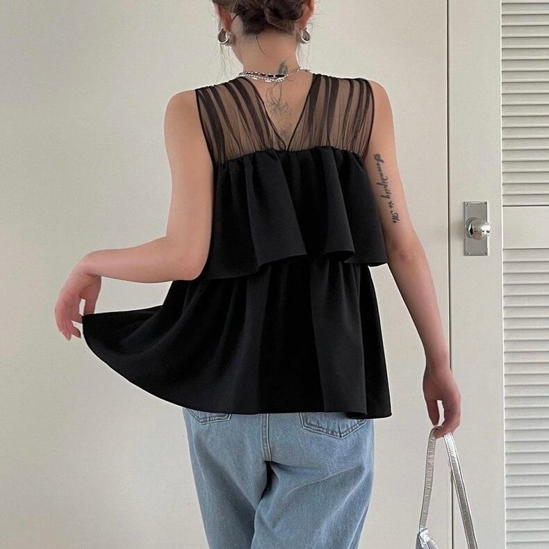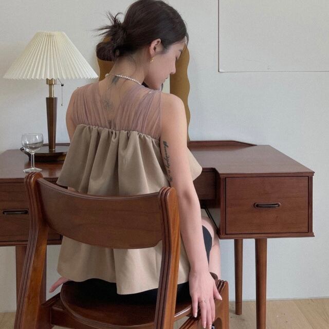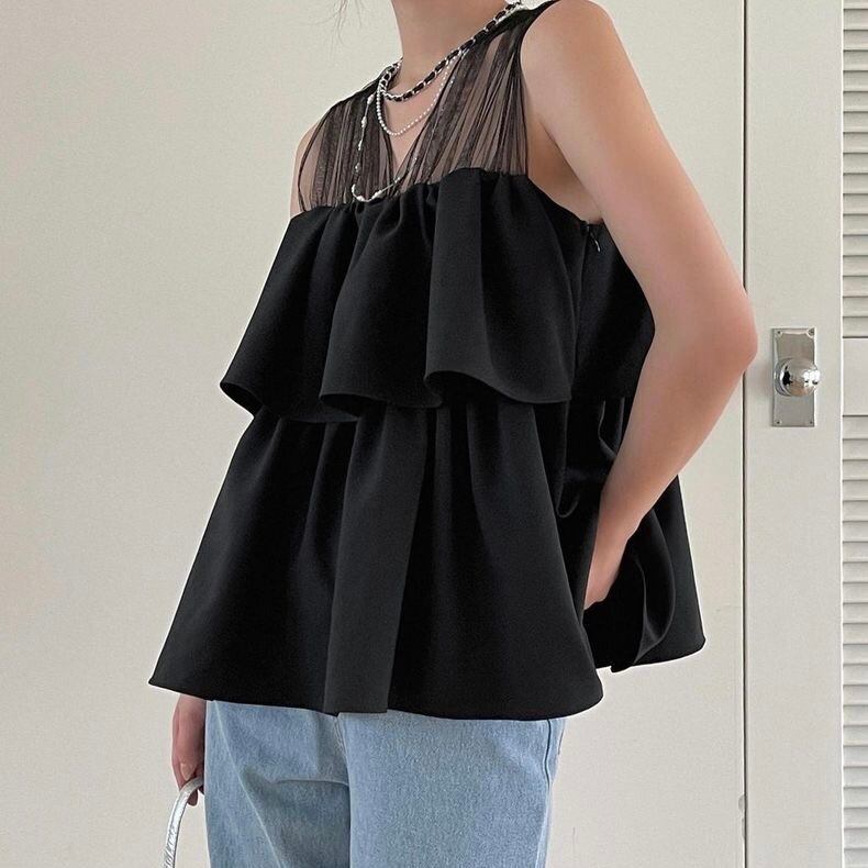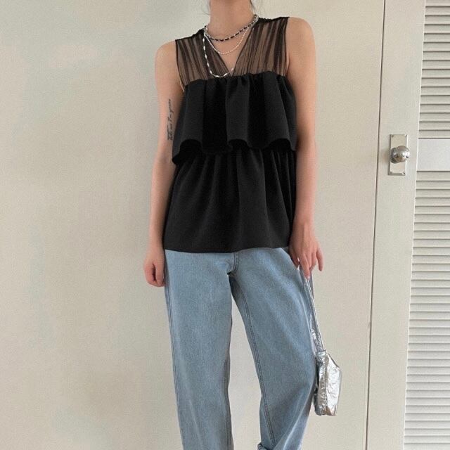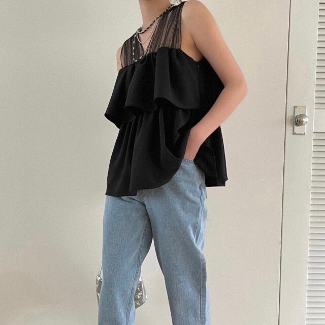 【tops】チュール切り替えフリルトップス2色 JF6246