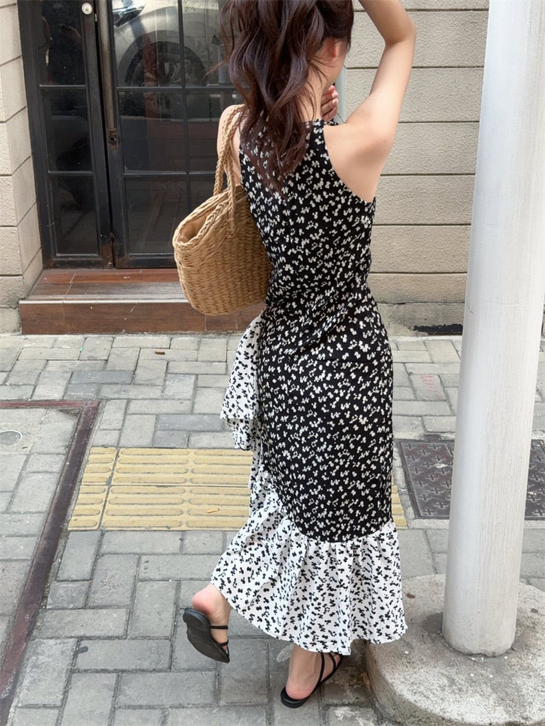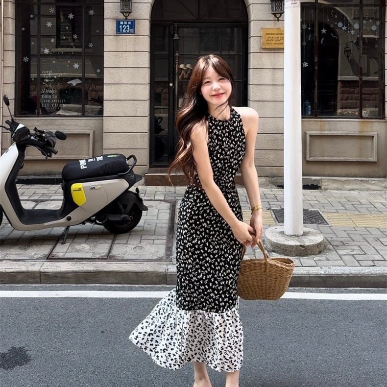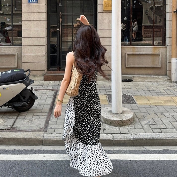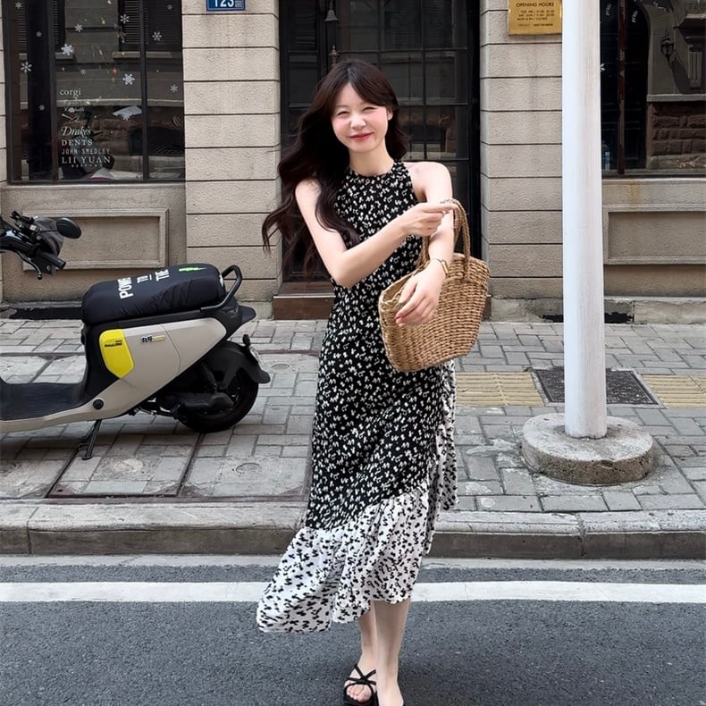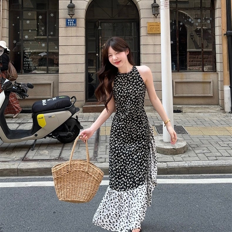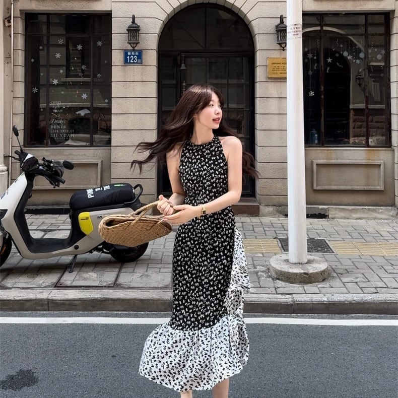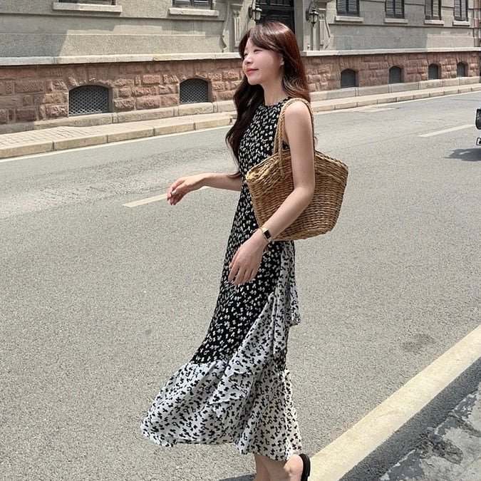 【dress】フラワー柄ノースリーブワンピース JF6252