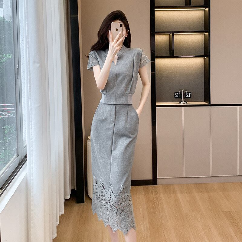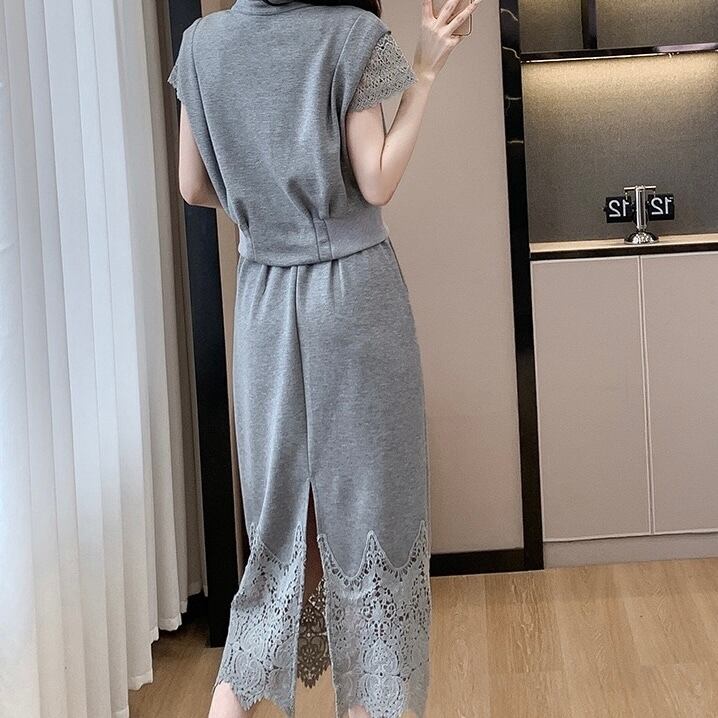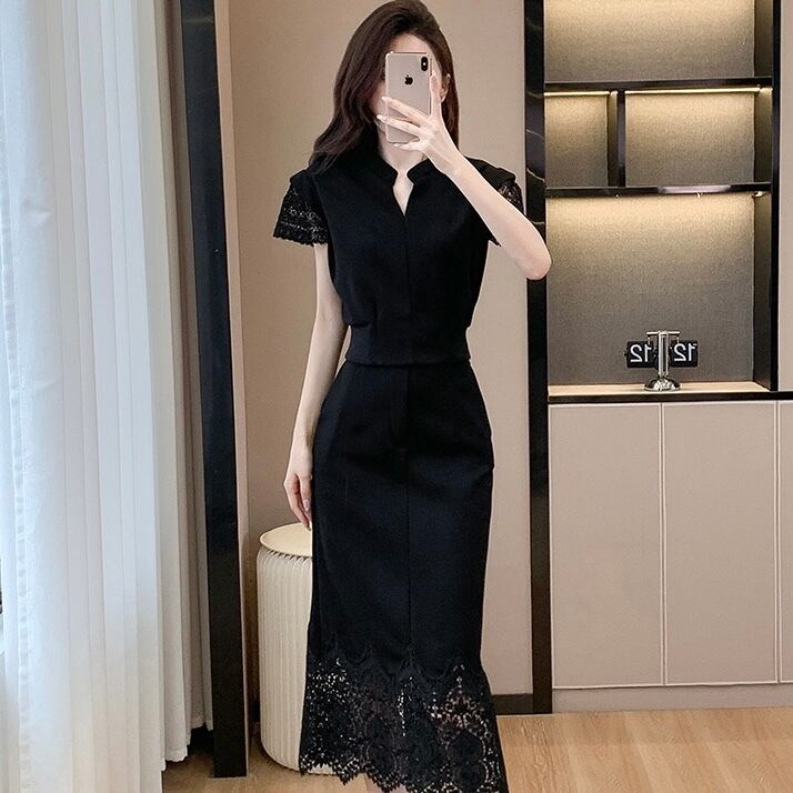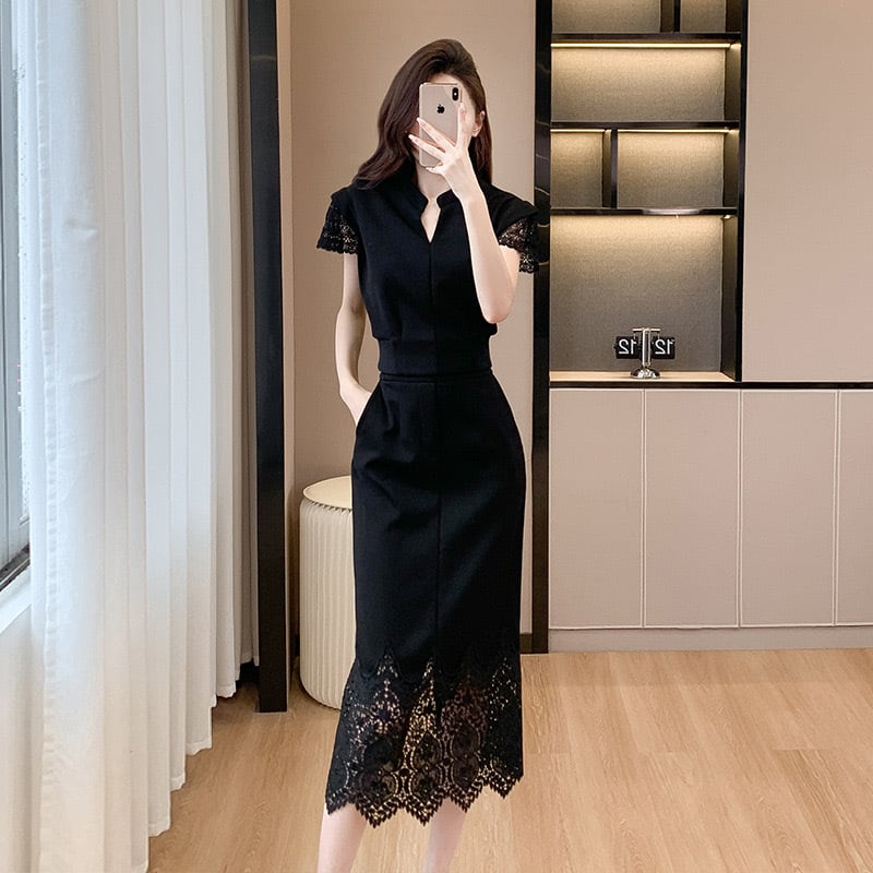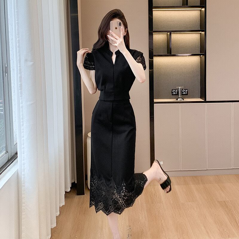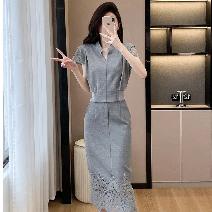 【set】S〜2XLフレンチトップスxレーススカート2色 JF6265