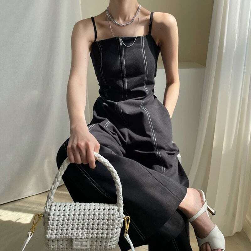 【set】カジュアルレトロジッパーサロペット3色 KR6320