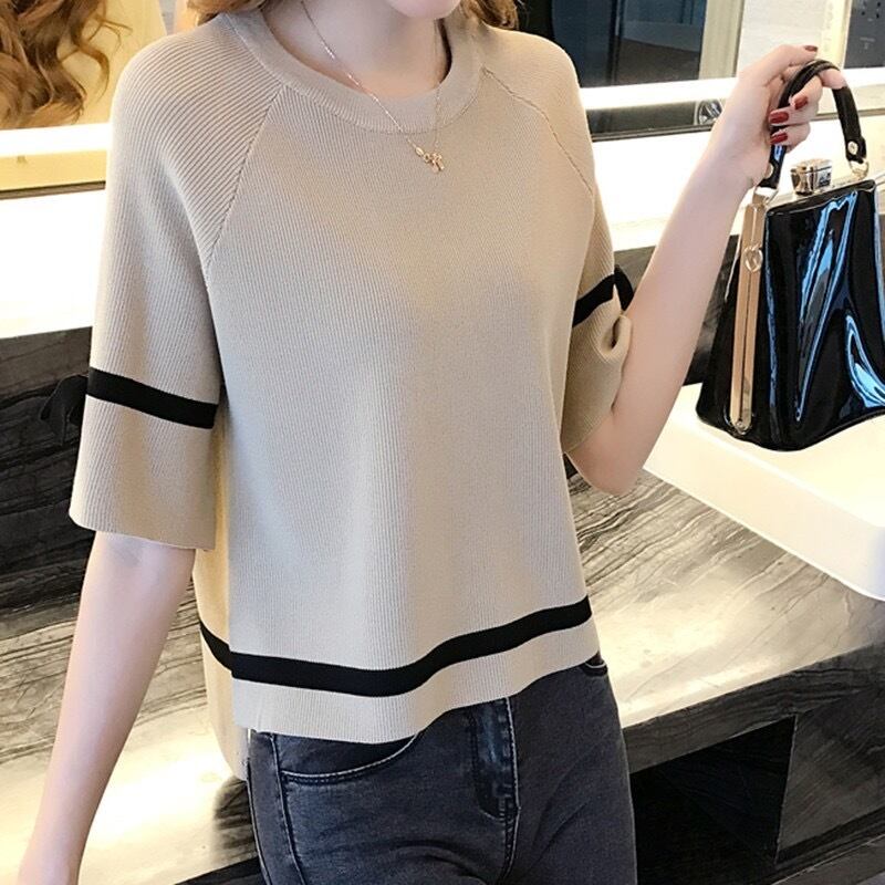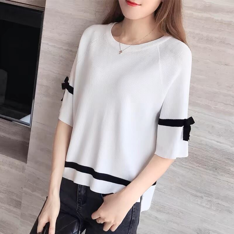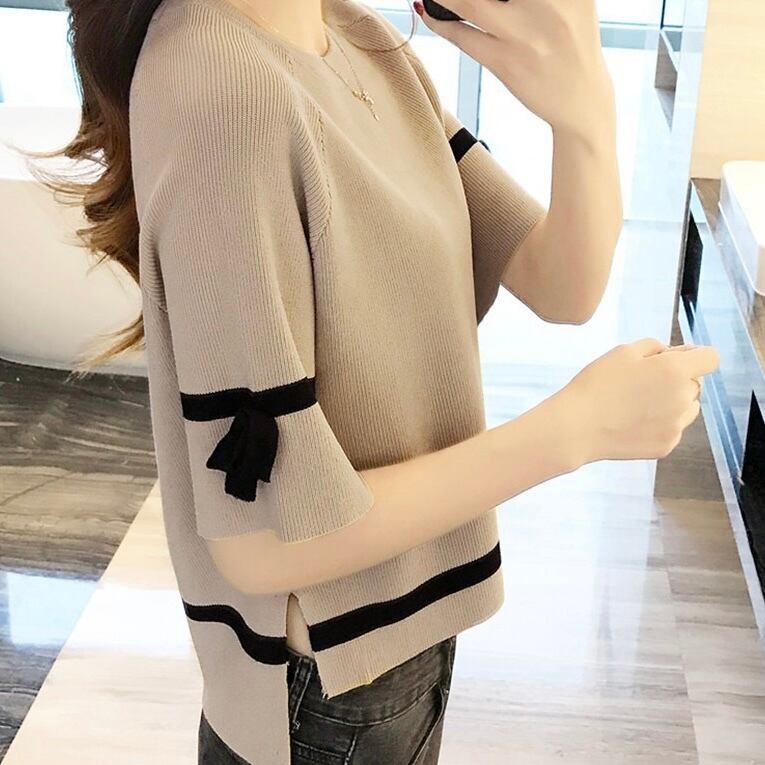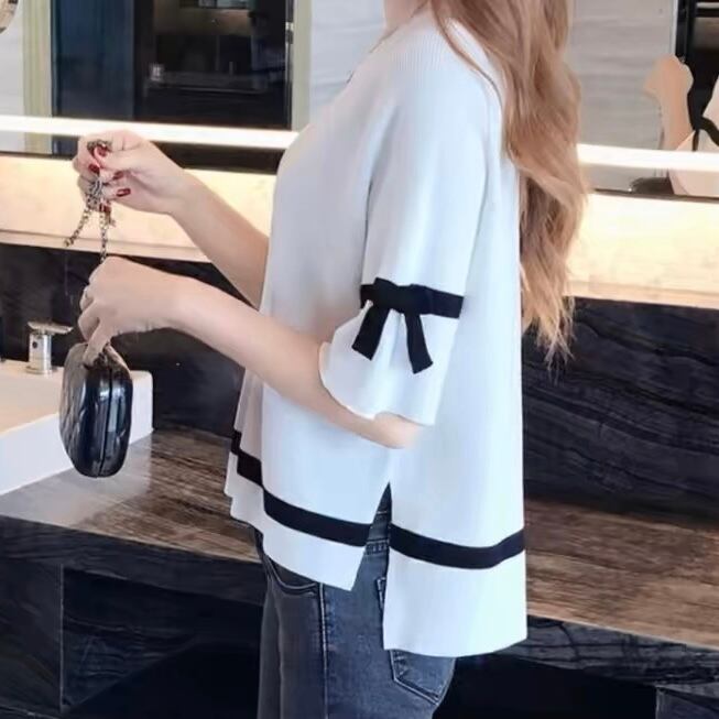 【tops】袖リボン配色ニットトップス3色 JF6277