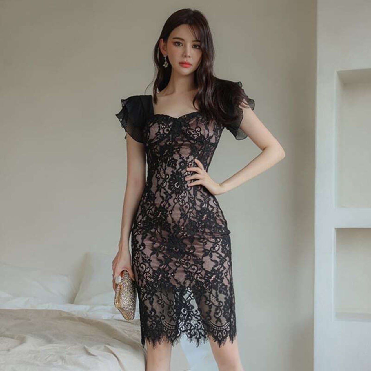 【dress】シースルーセクシータイトワンピース KR6328