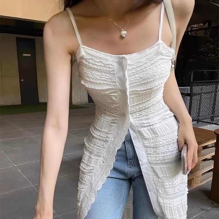 【dress】フロントボタンレースキャミワンピース ZM6291