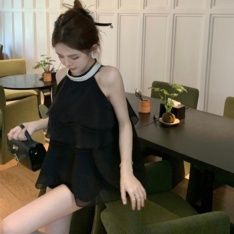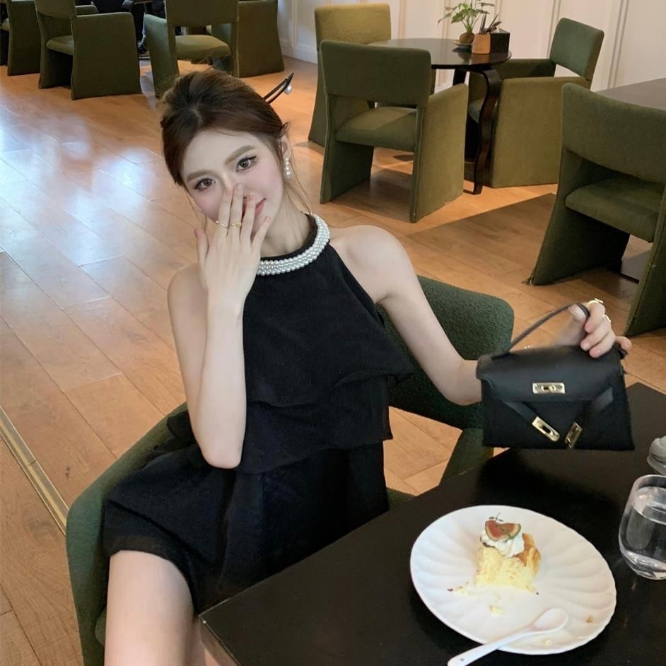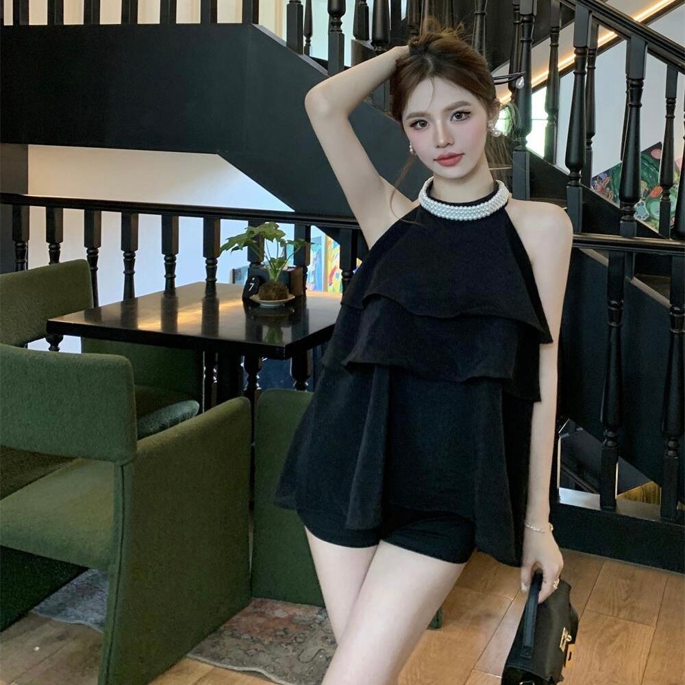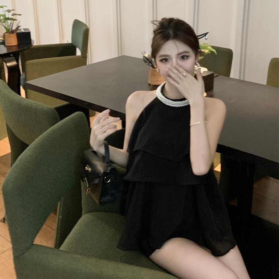 【tops】4色パール付きホルターネックトップス ZM6295