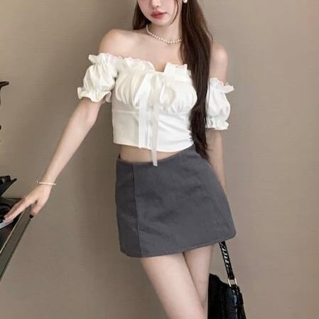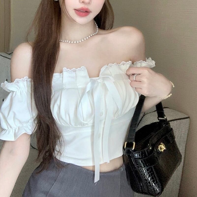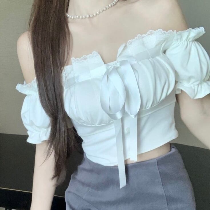 【tops】オフショルダーフリルリボントップス KR6401