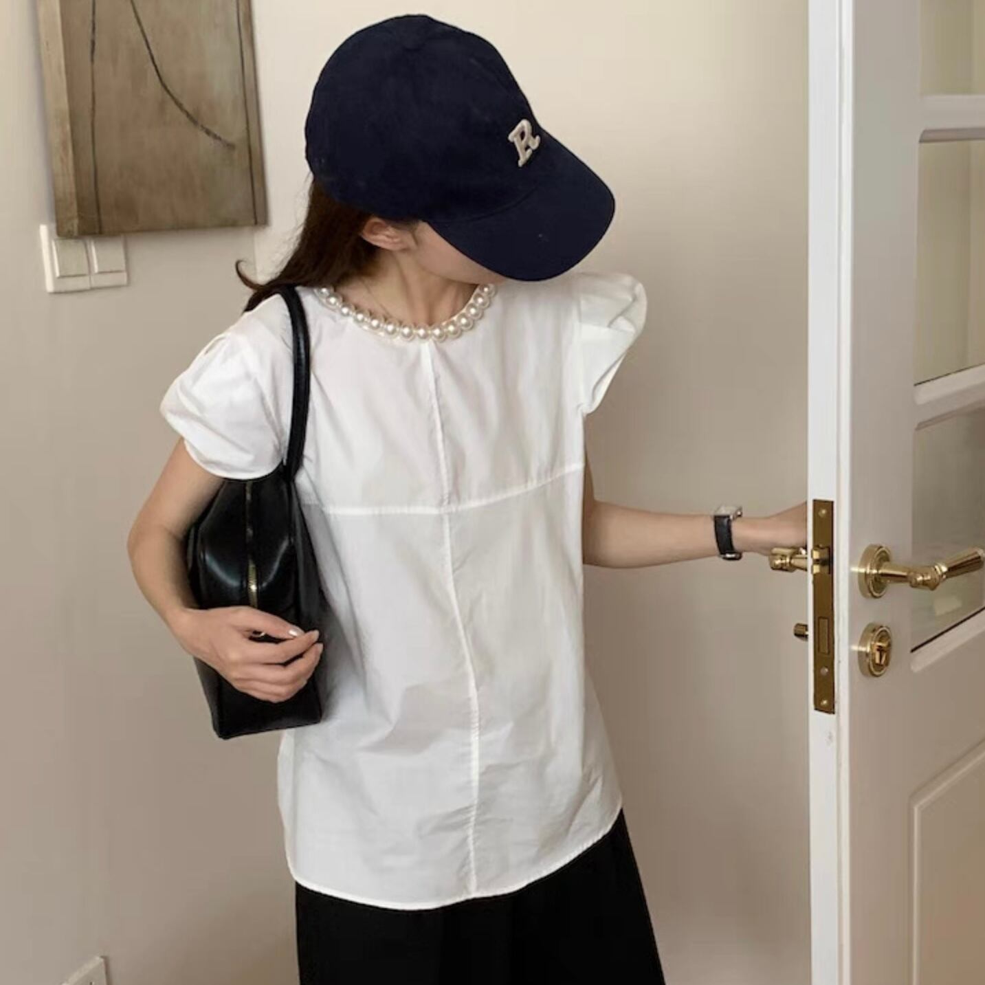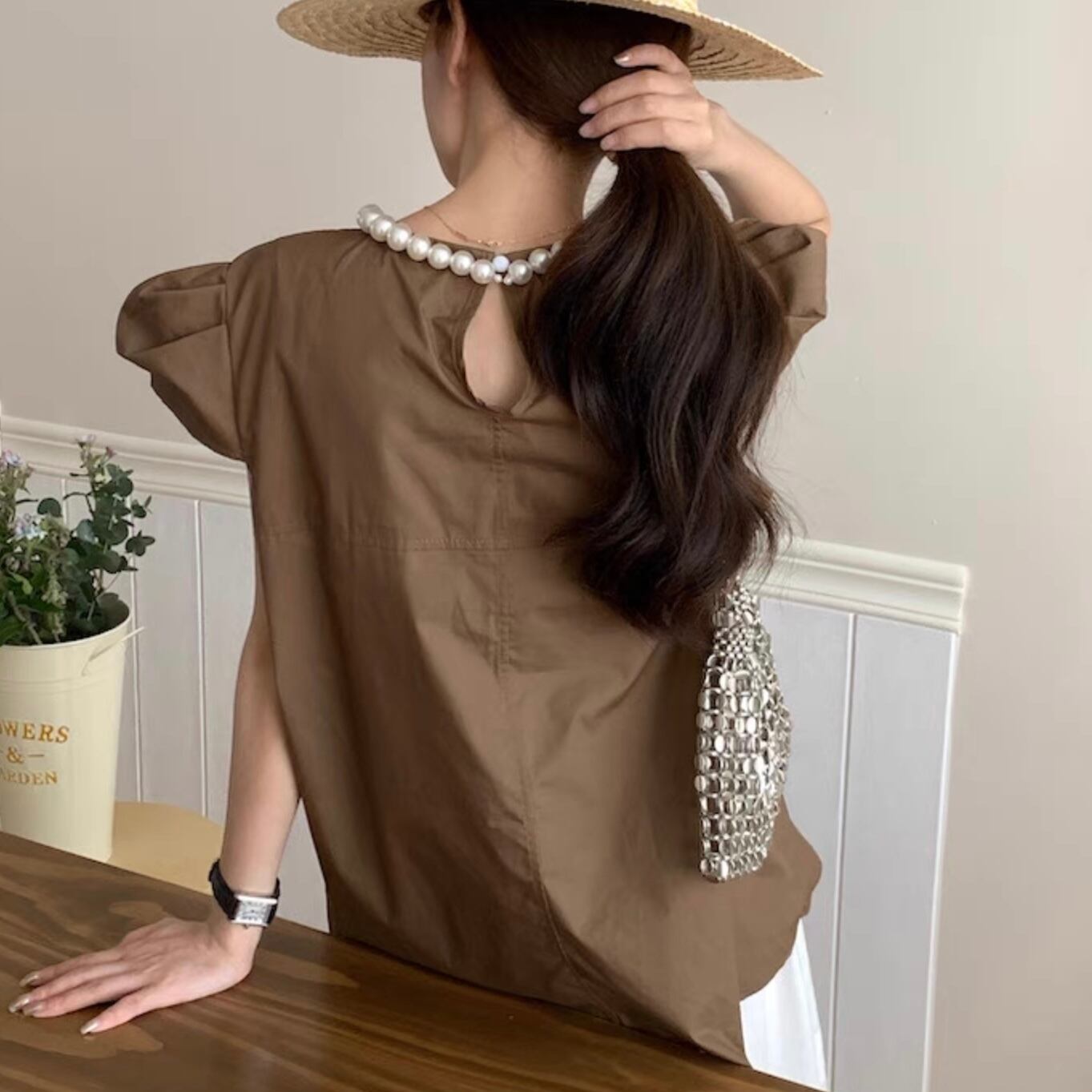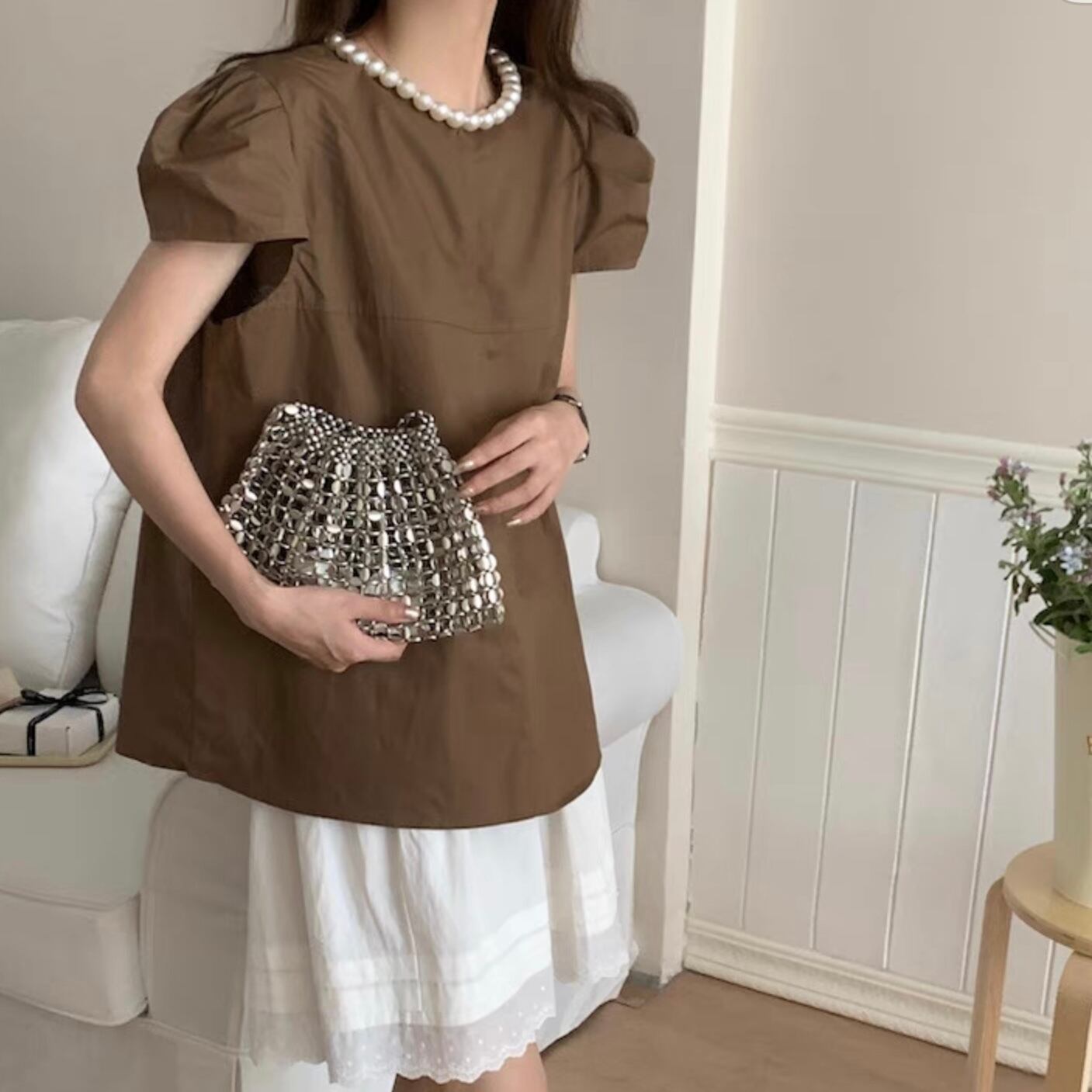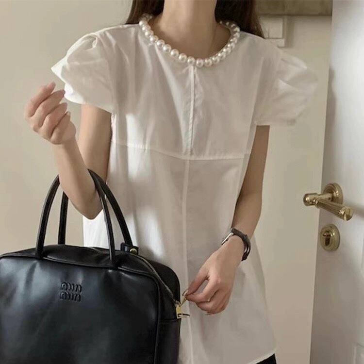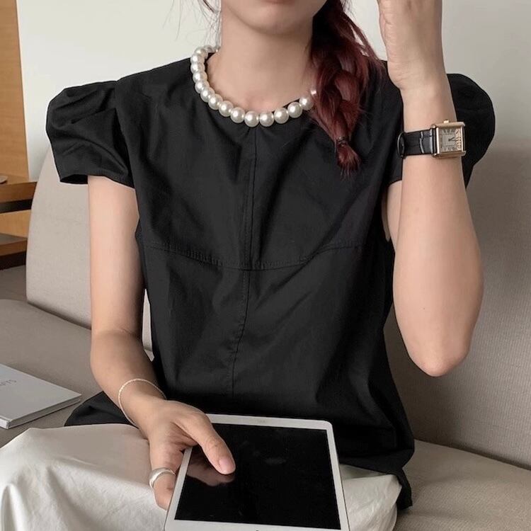 【tops】パールネック韓国系トップス3色 HX7043