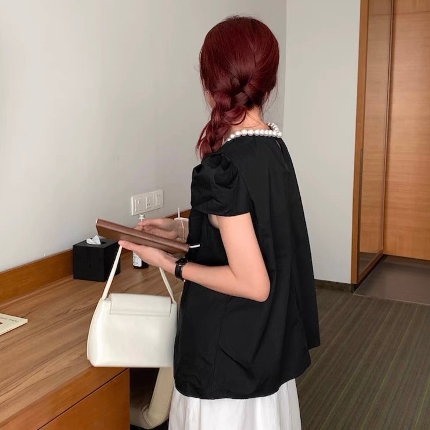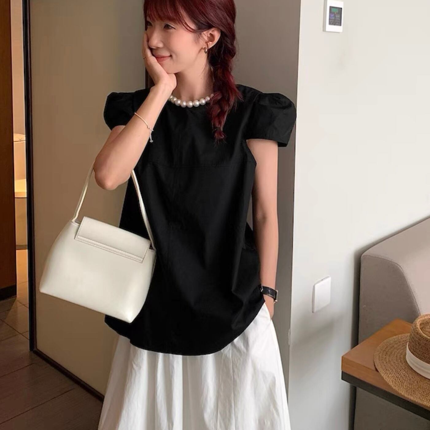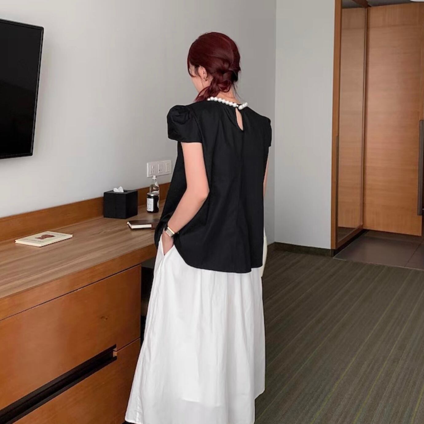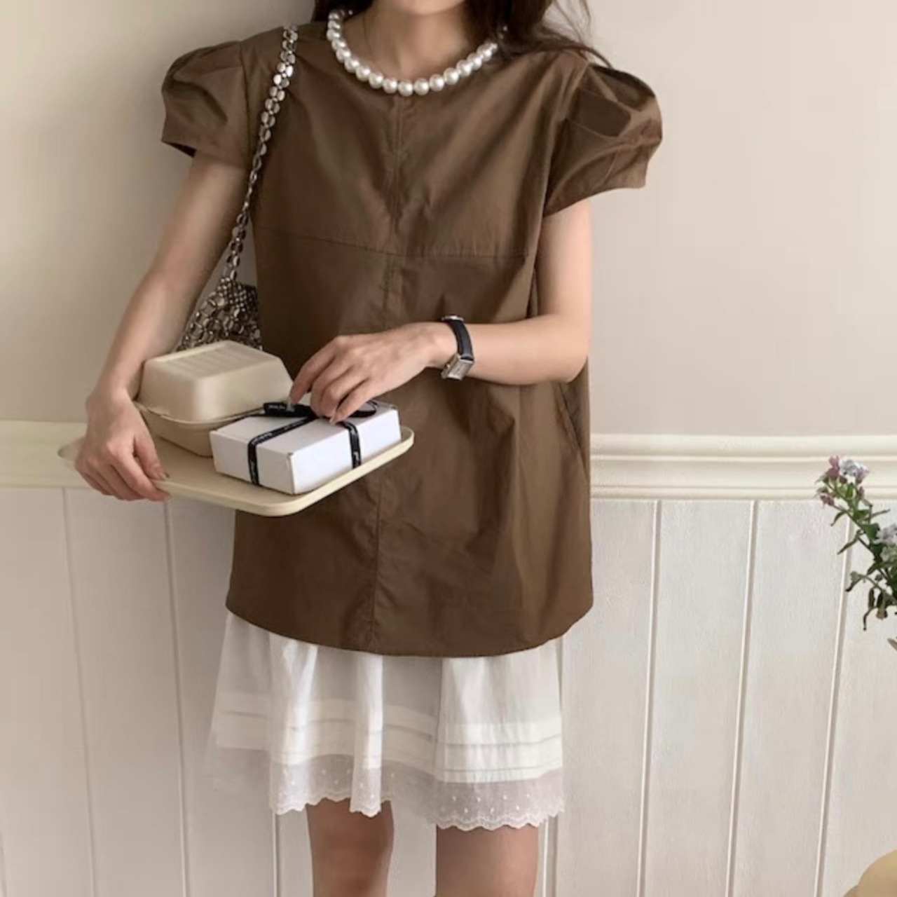 【tops】パールネック韓国系トップス3色 HX7043