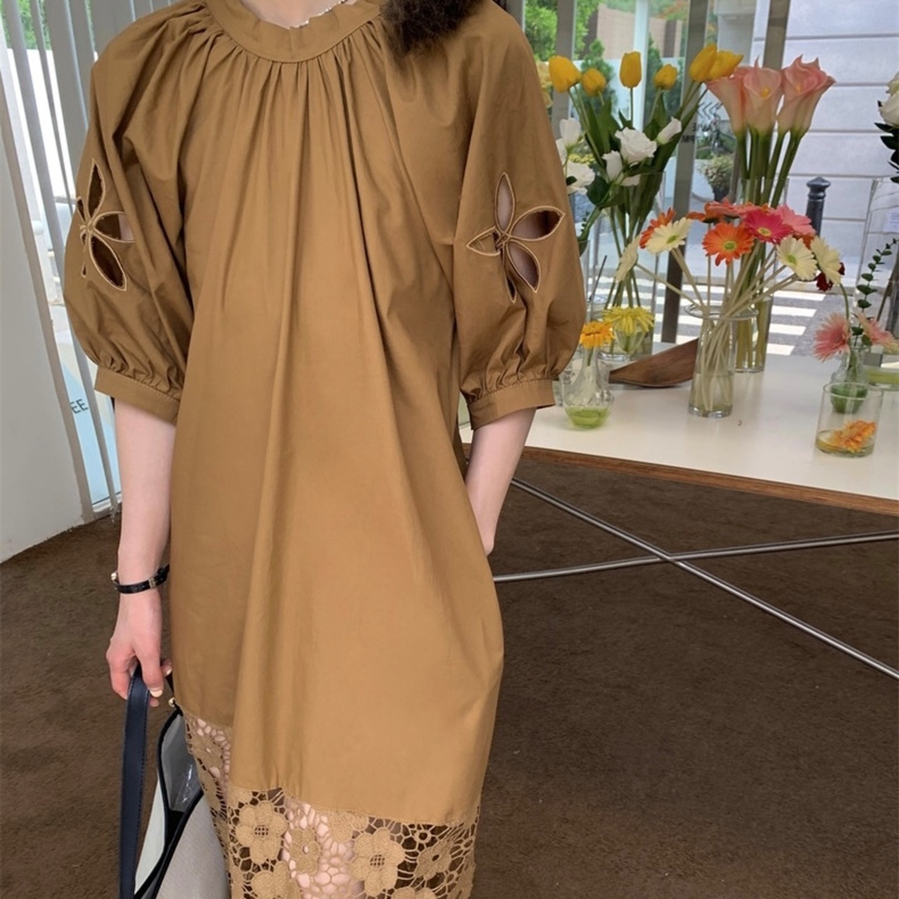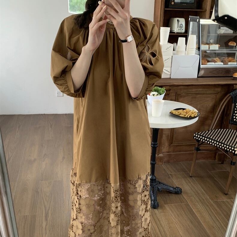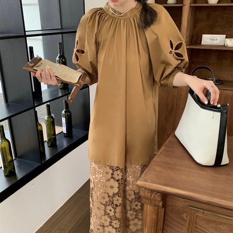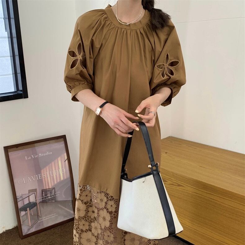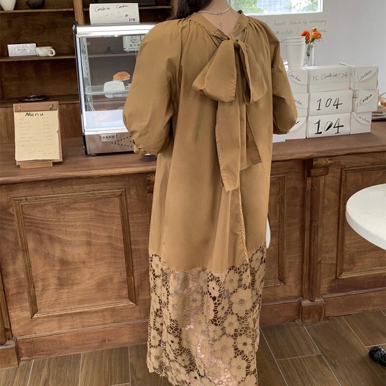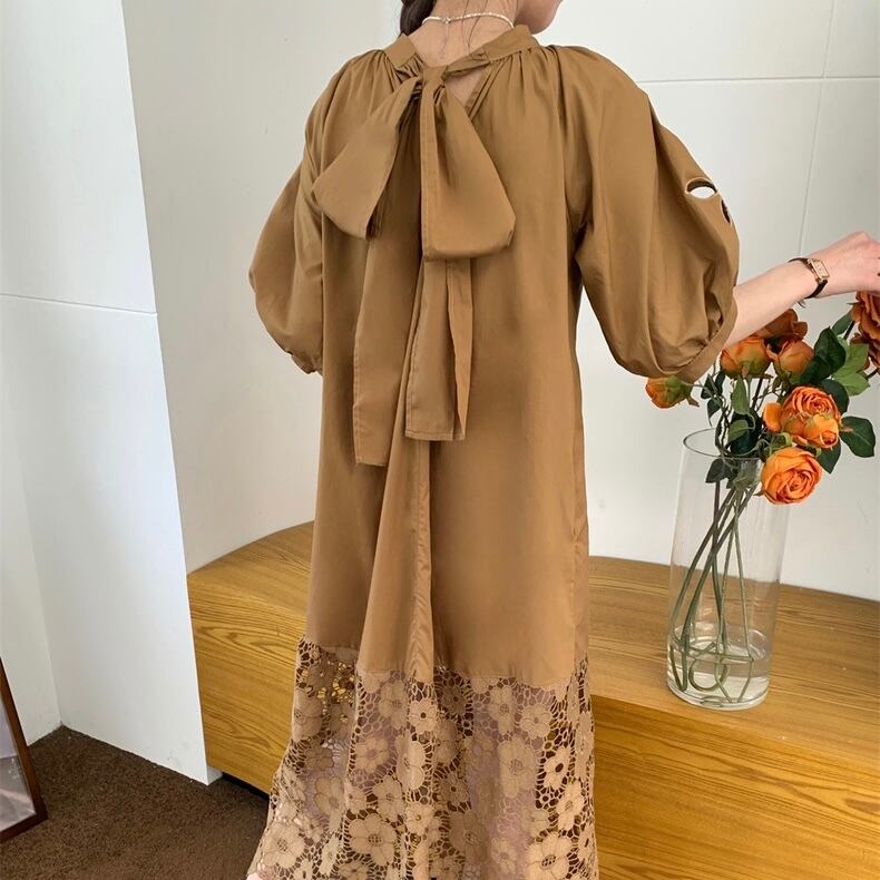 【dress】バックリボンレース切り替えワンピース HX7050