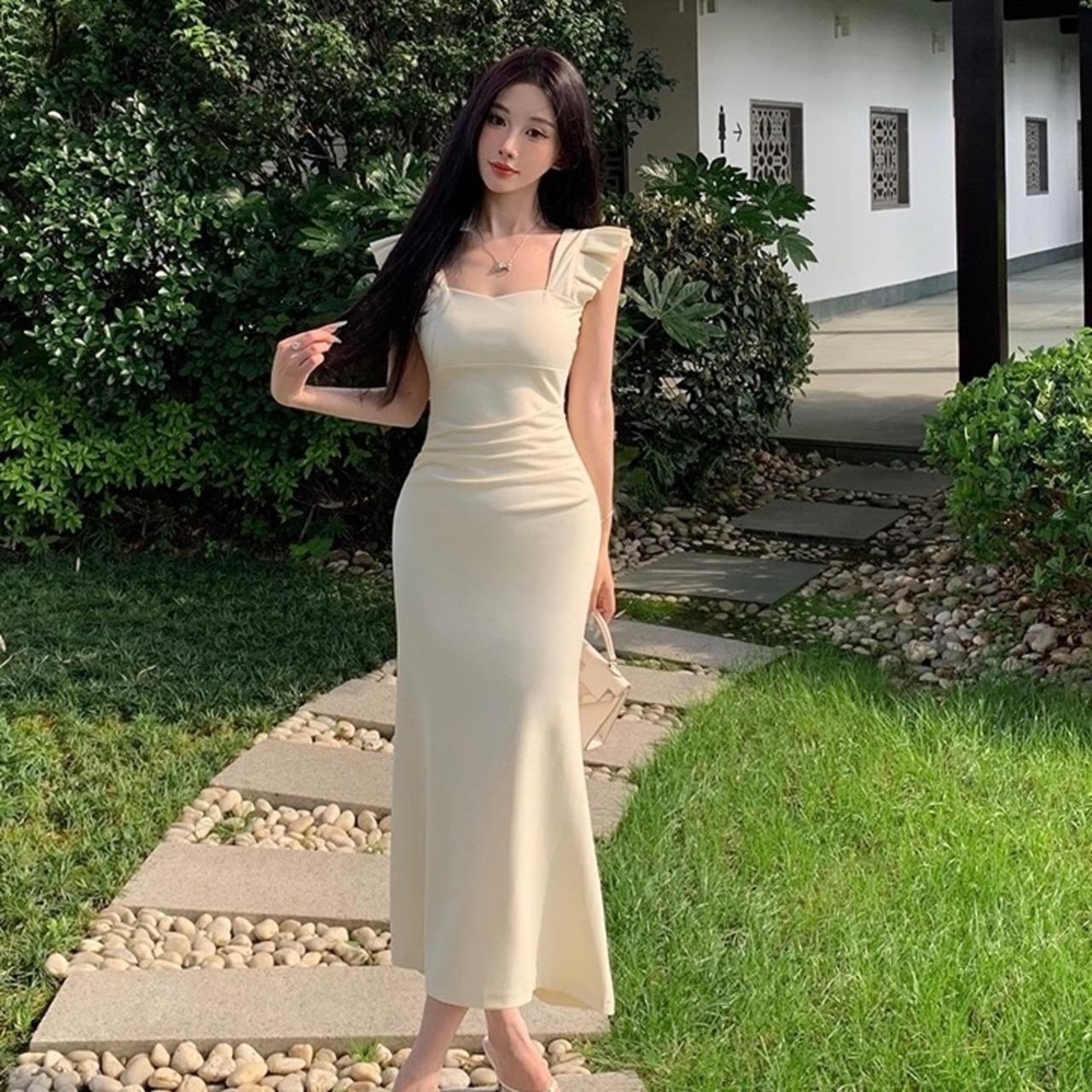 【dress】フリルノースリーブワンピース2色 HX7056