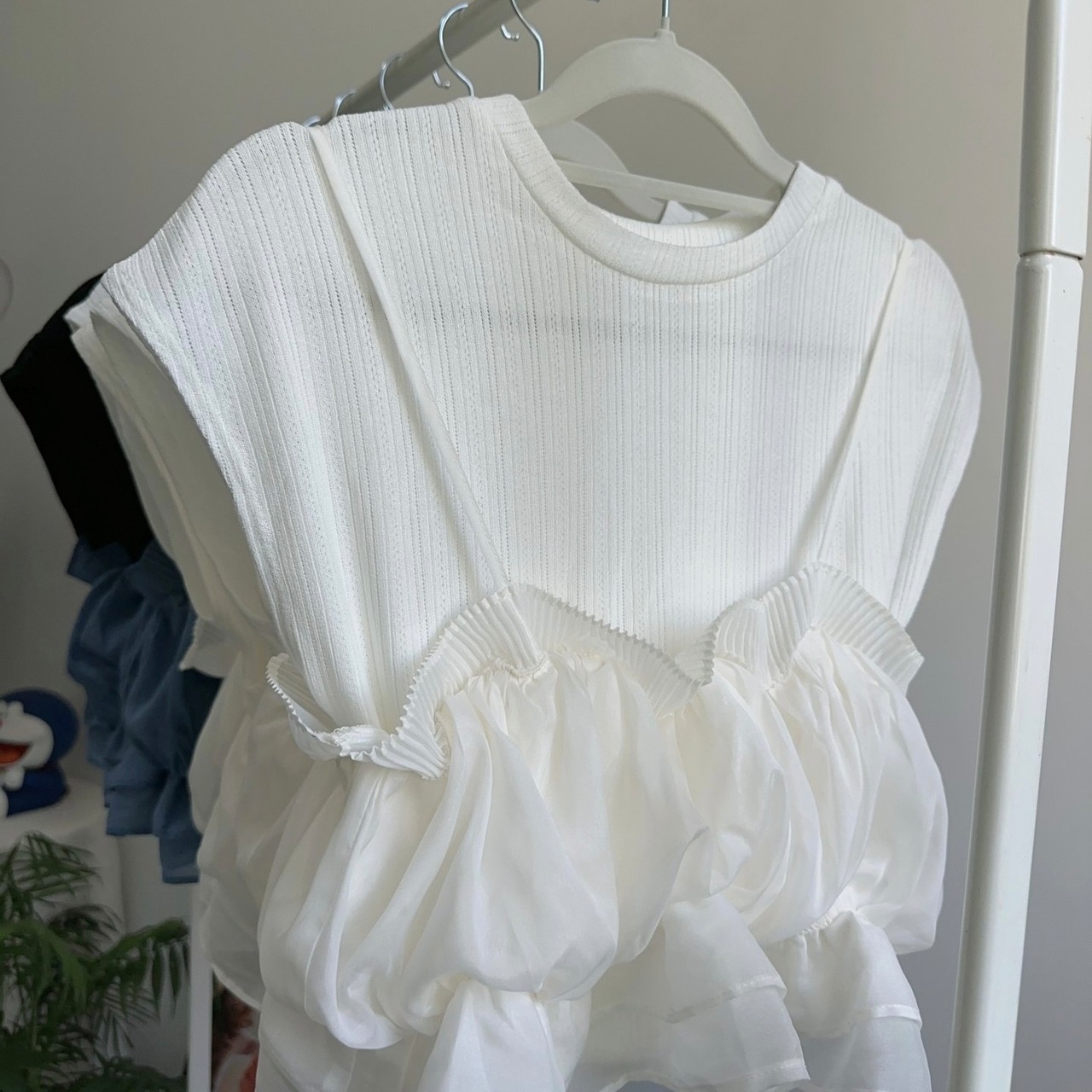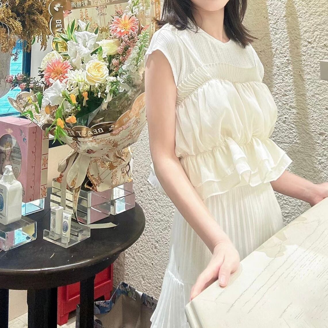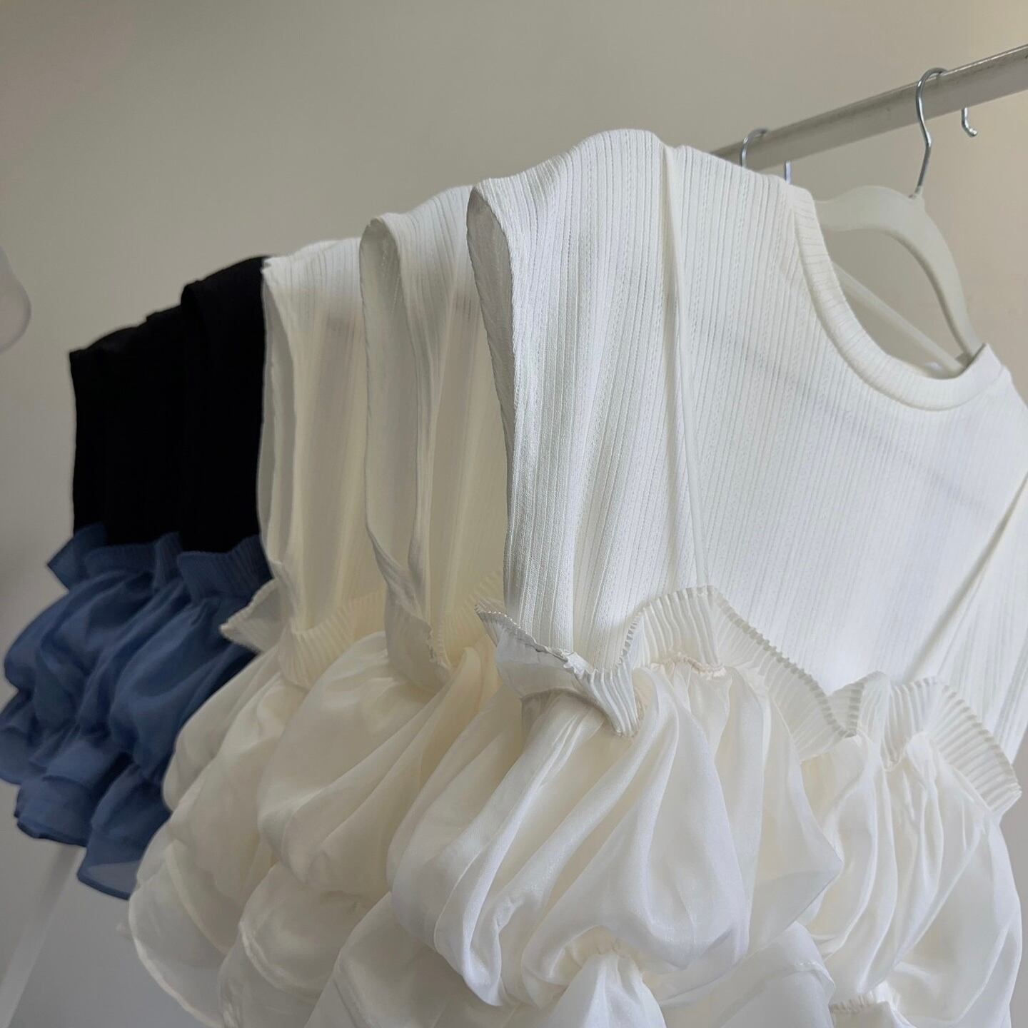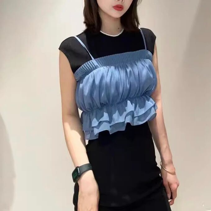 【set】ニットトップスxフリルビスチェ2色 JY7171