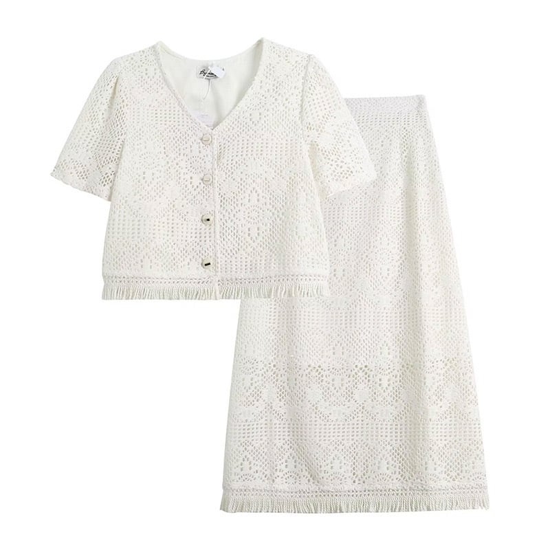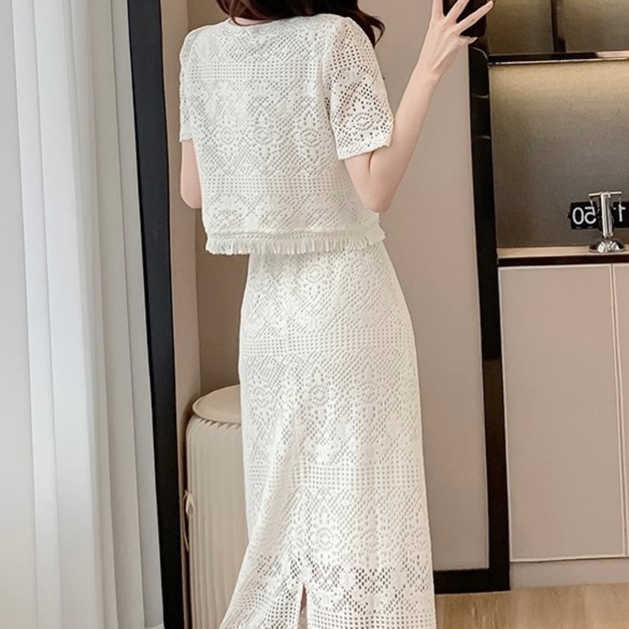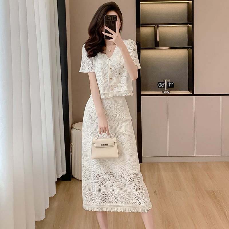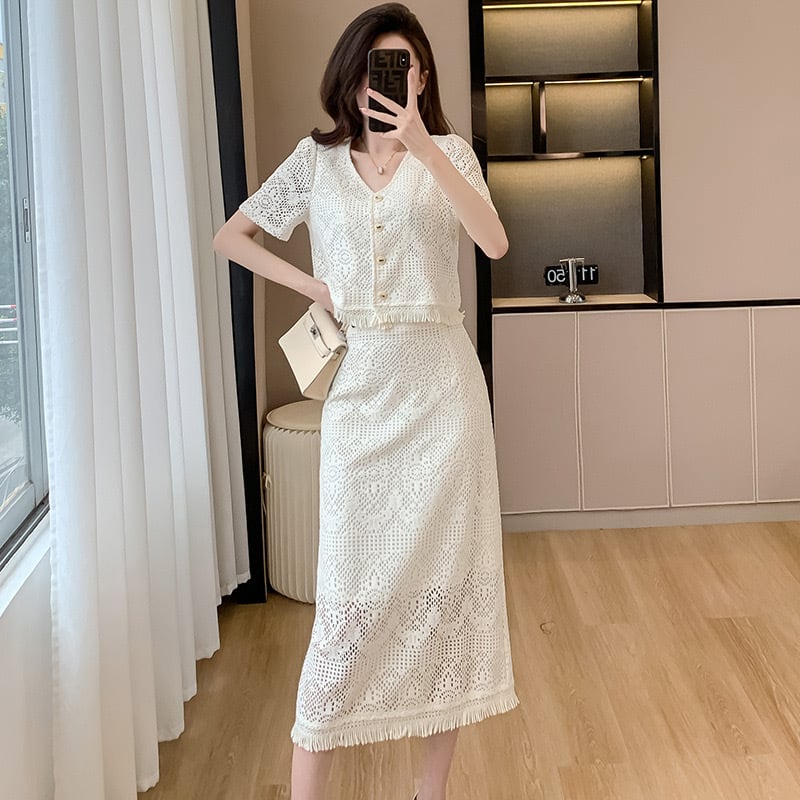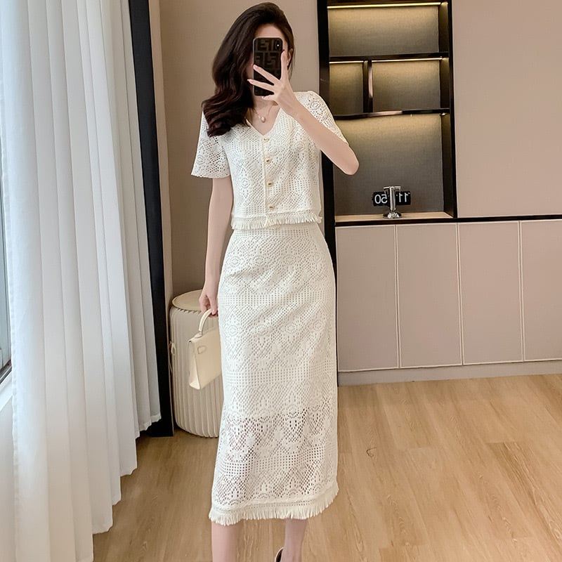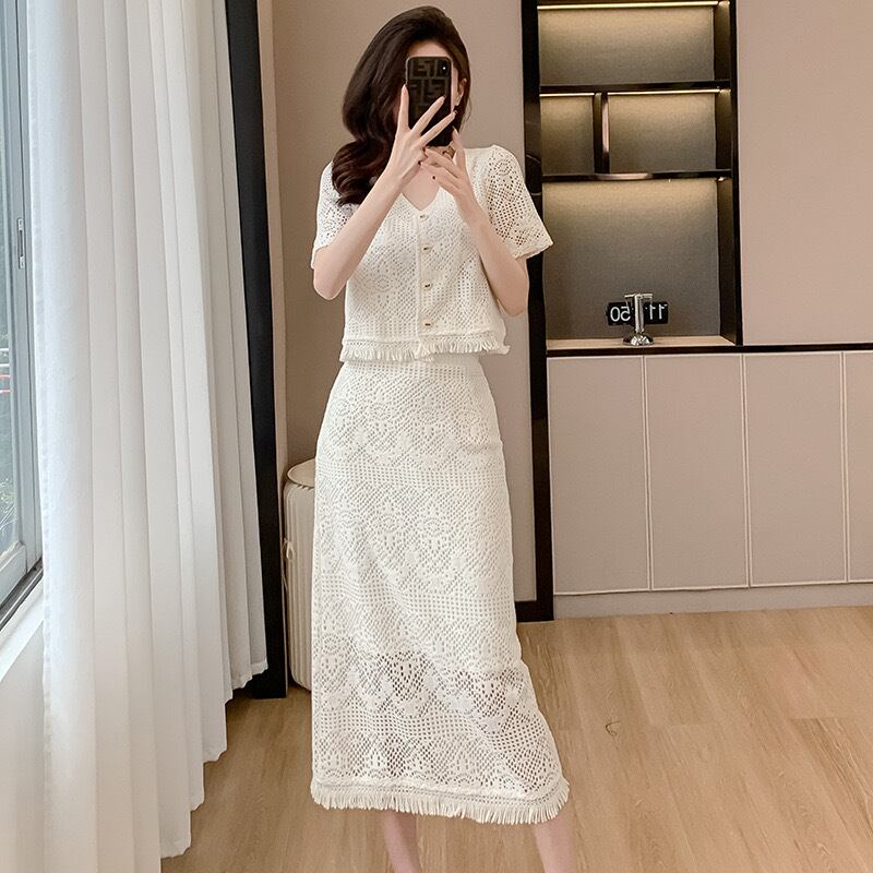 【set】フレンチトップスxスリット入りスカート JY7176