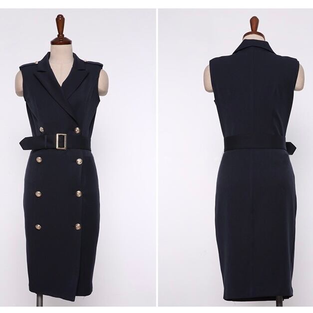 【dress】フロントボタンノースリーブワンピース KG7185