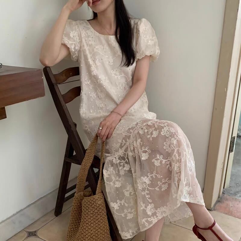 【dress】レース刺繍ゆったりワンピース KD7193