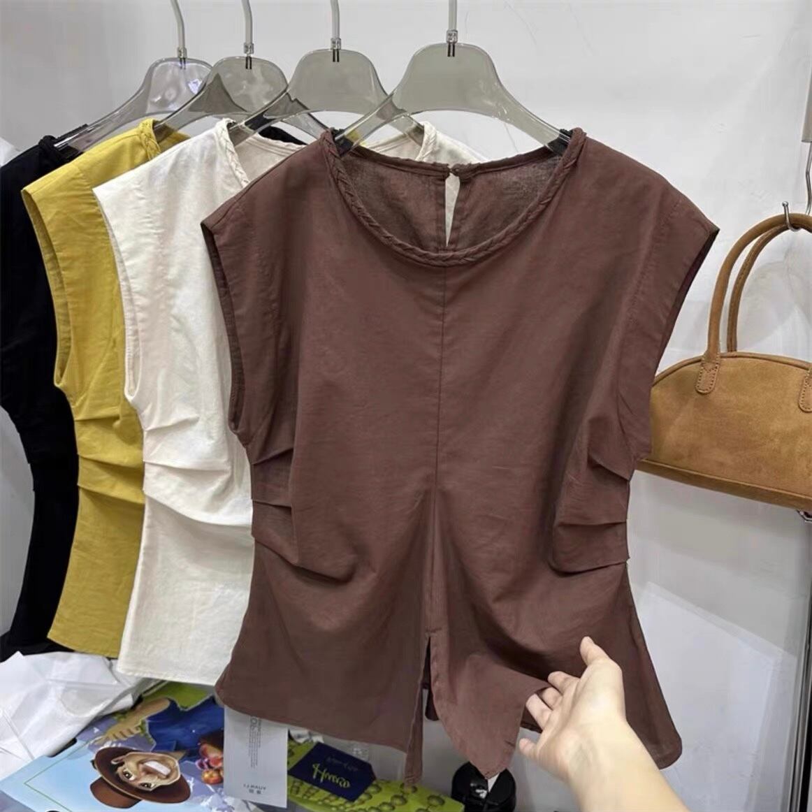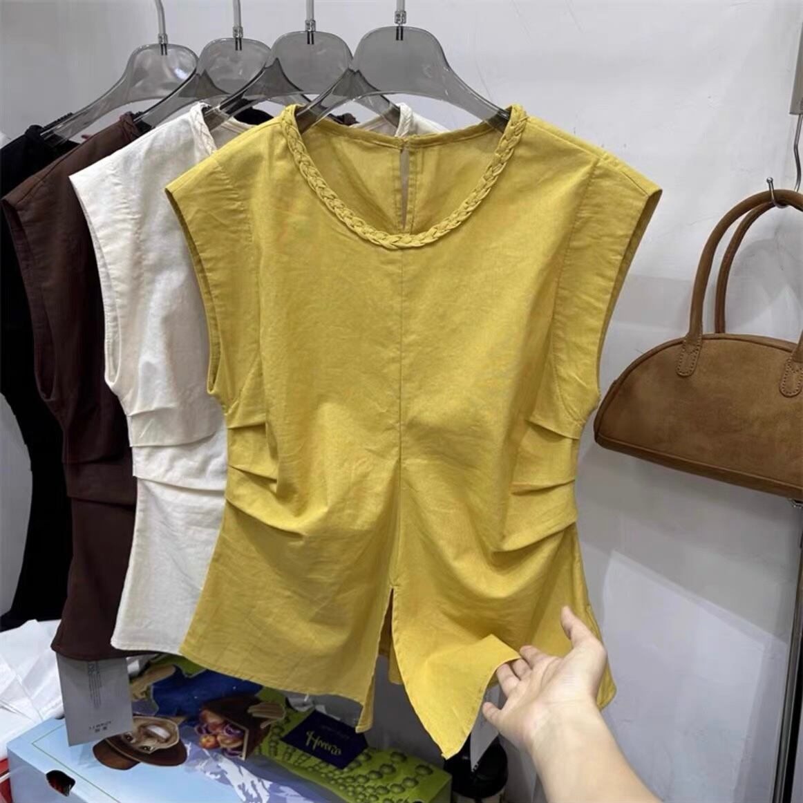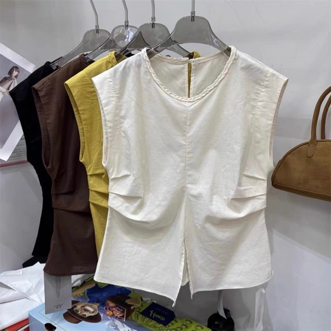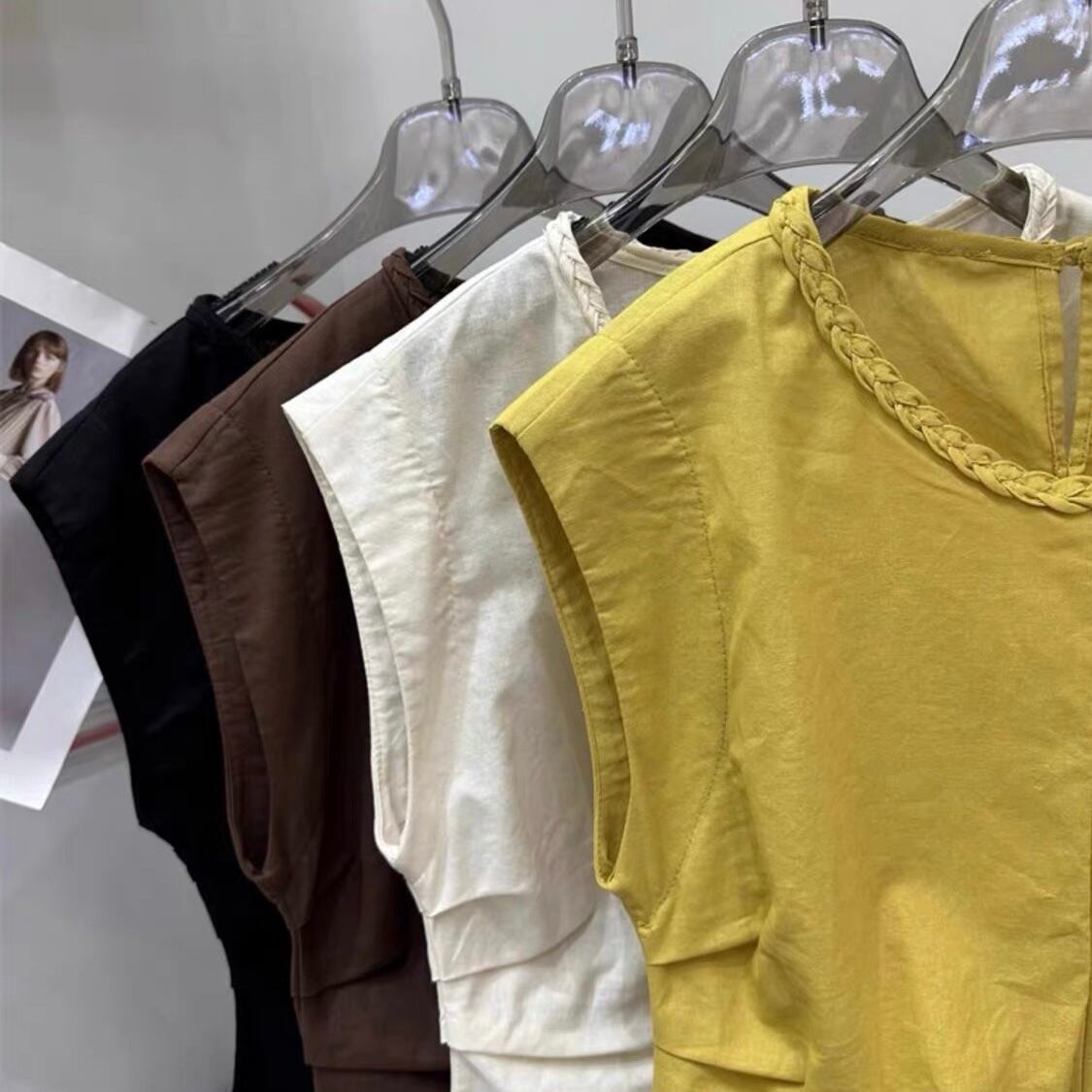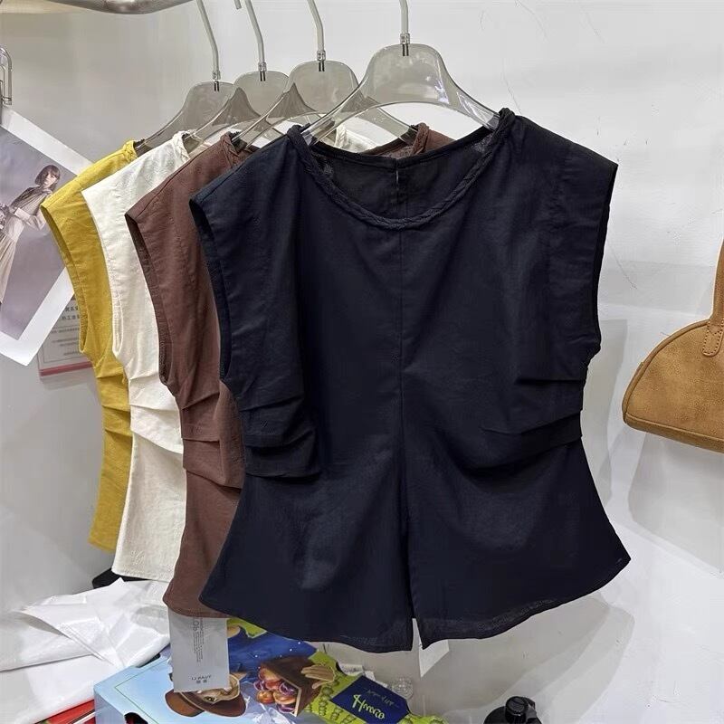 【tops】M〜2XLシンプルノースリーブトップス4色 ZM7205