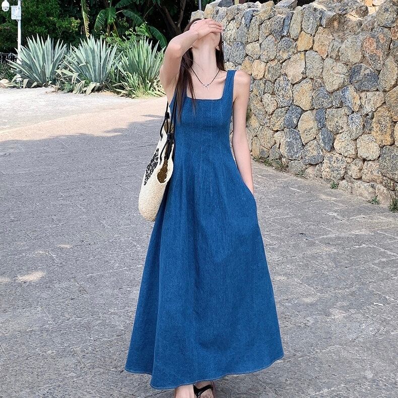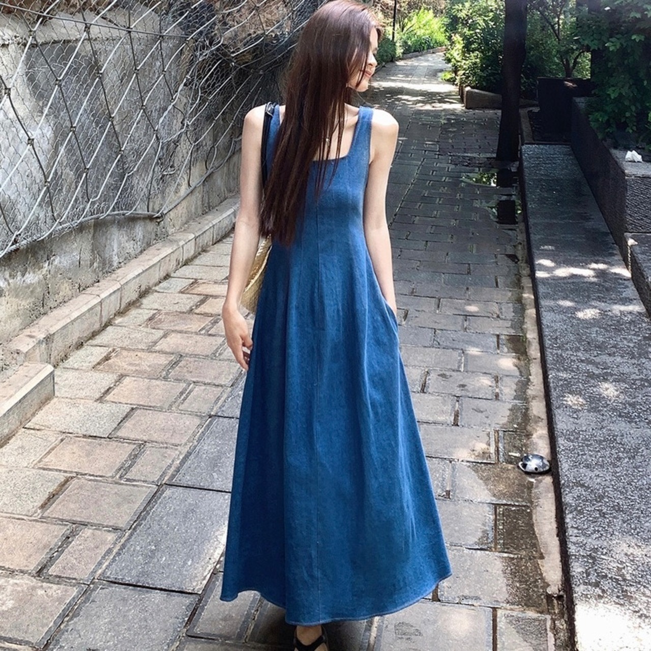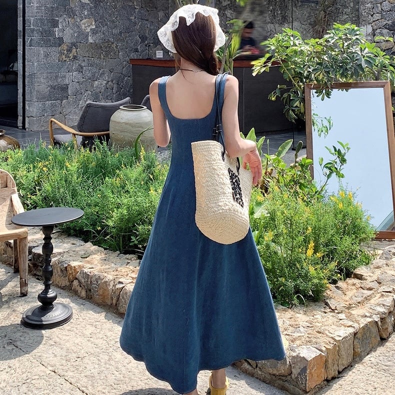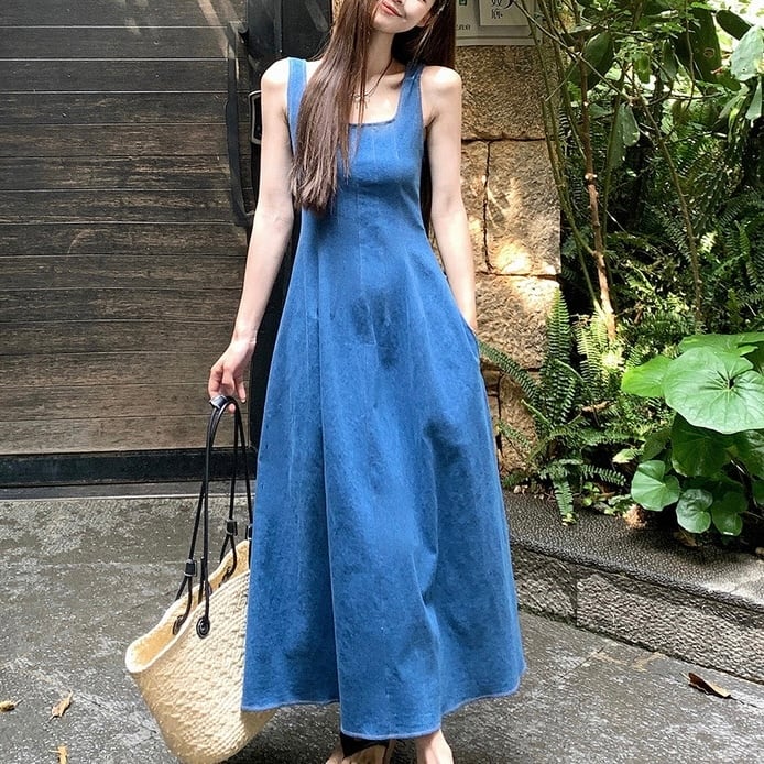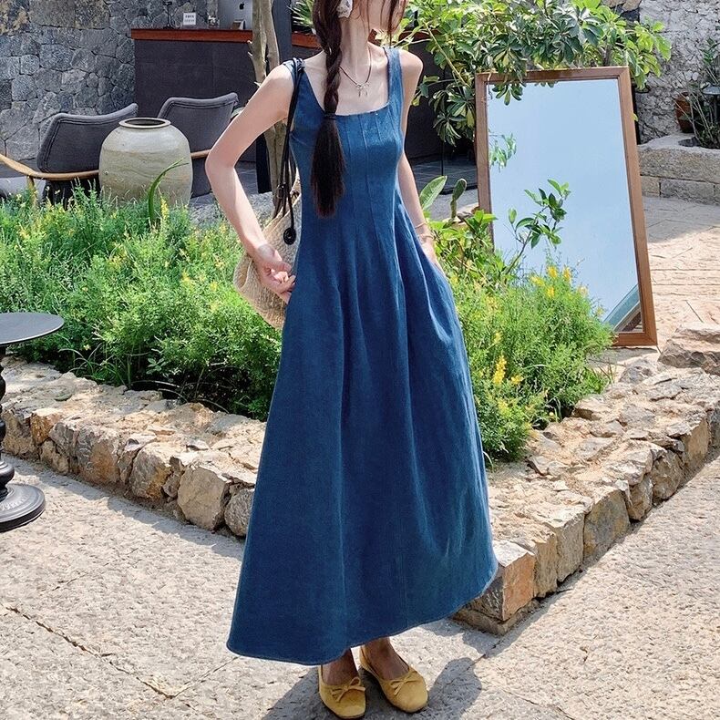 【dress】スクエアネックデニムキャミワンピース ZM7207