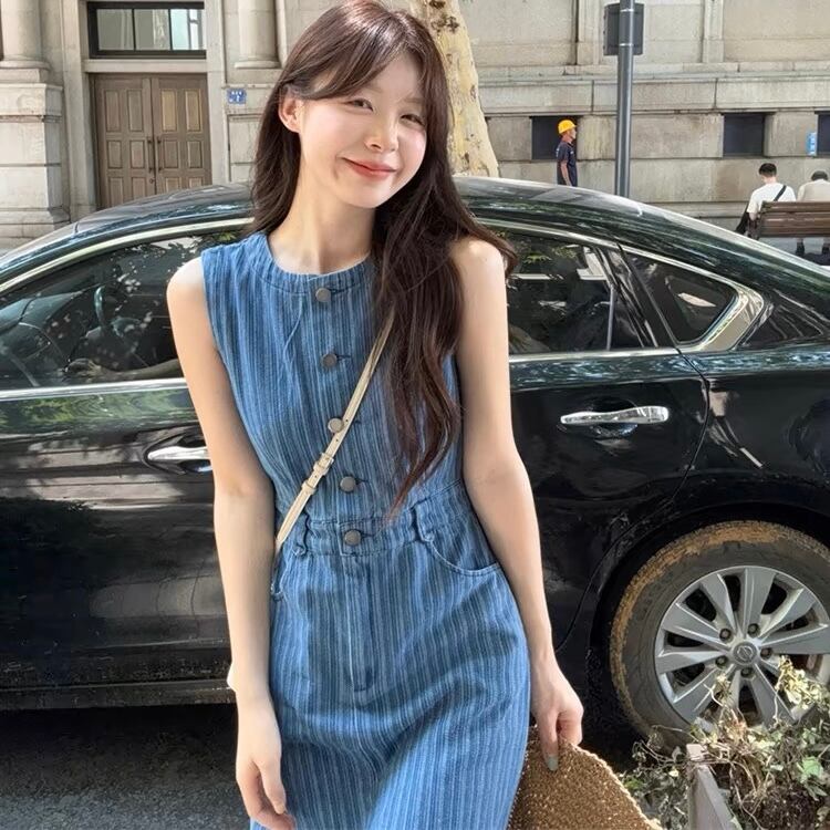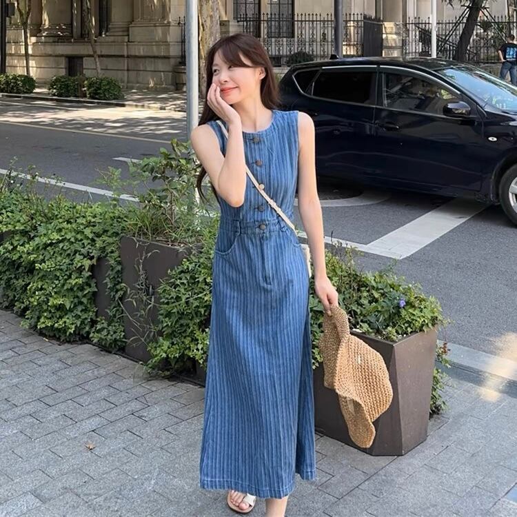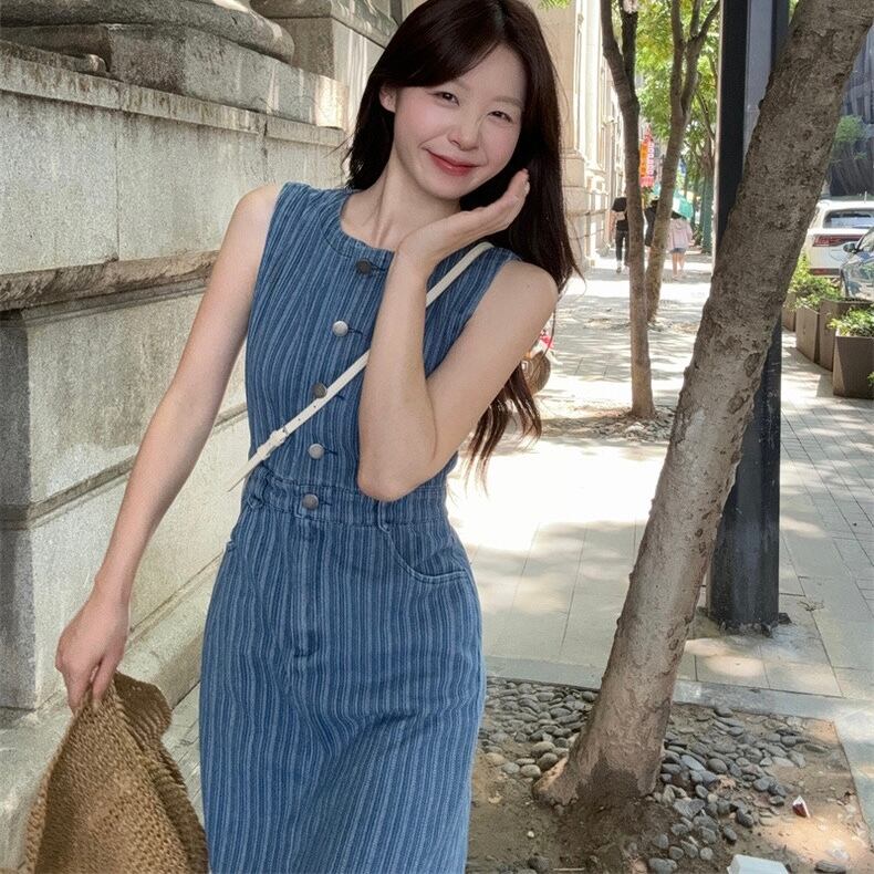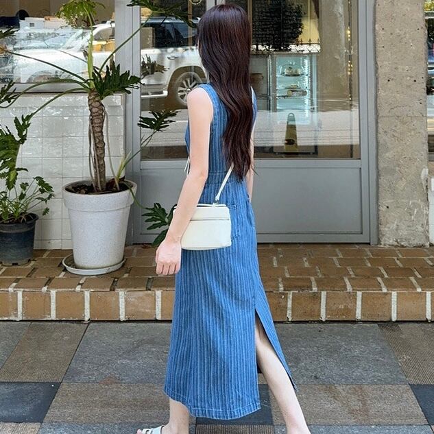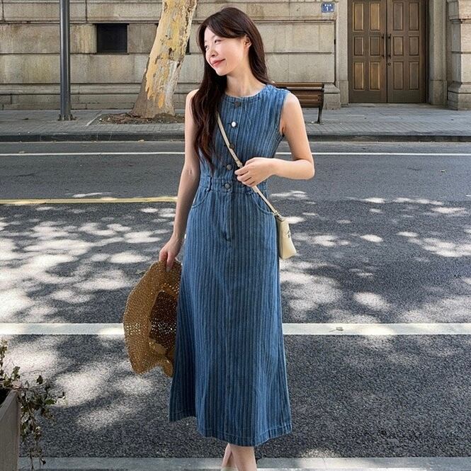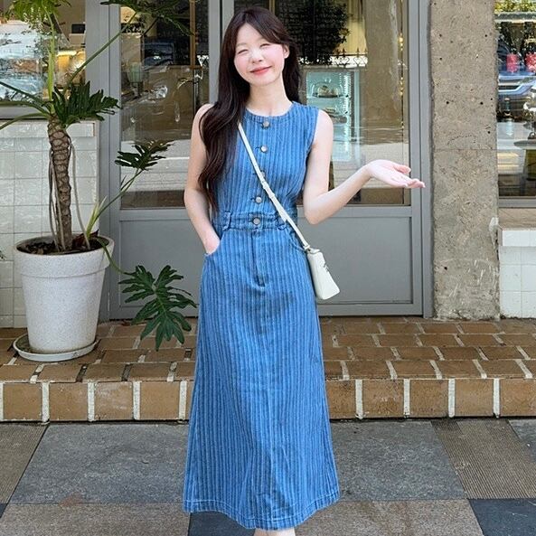 【dress】ポケット付きノースリーブデニムワンピース ZM7206