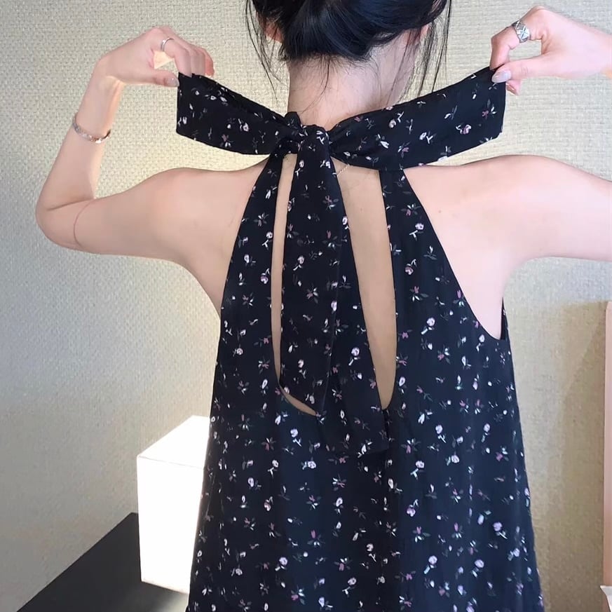 【tops】リボンホルターネックトップスミニワンピ KD7224