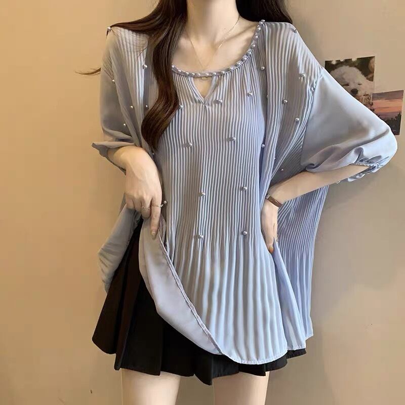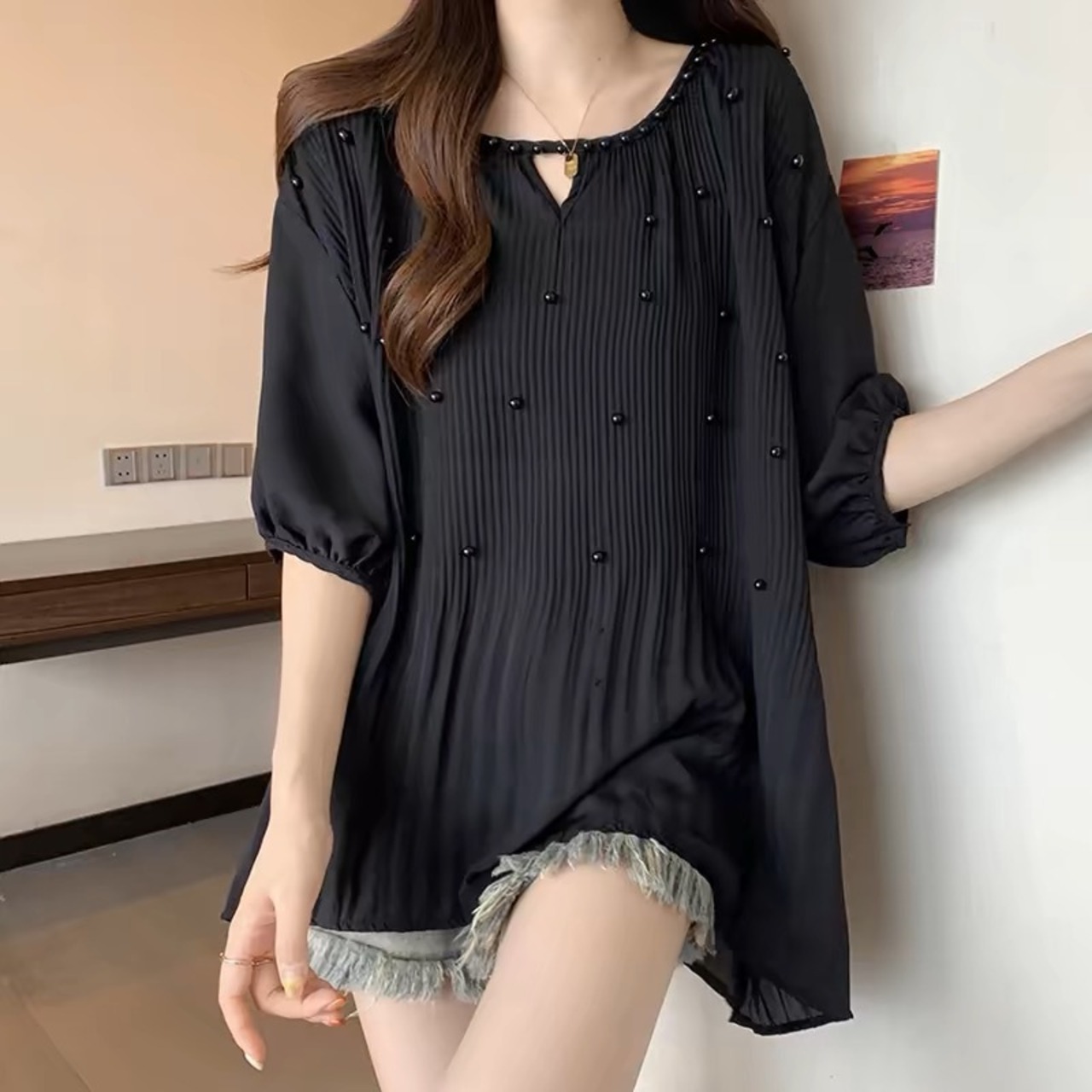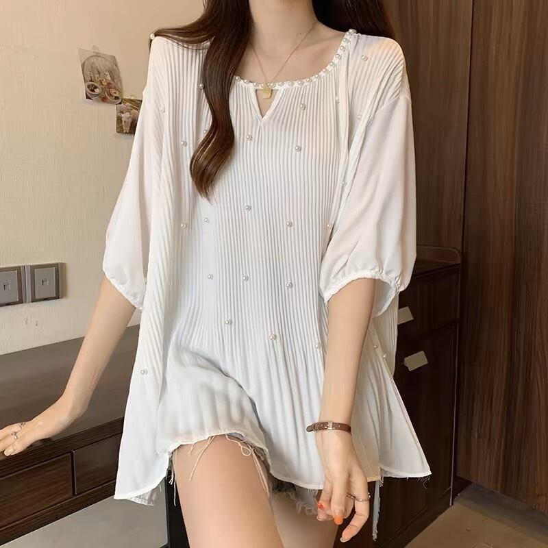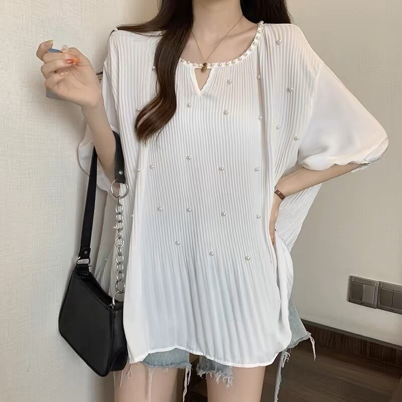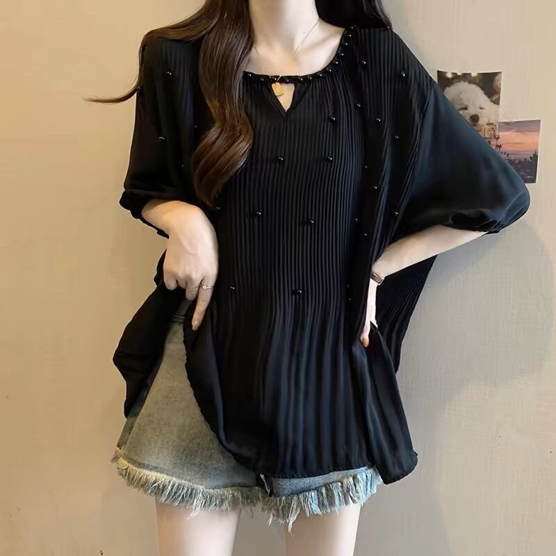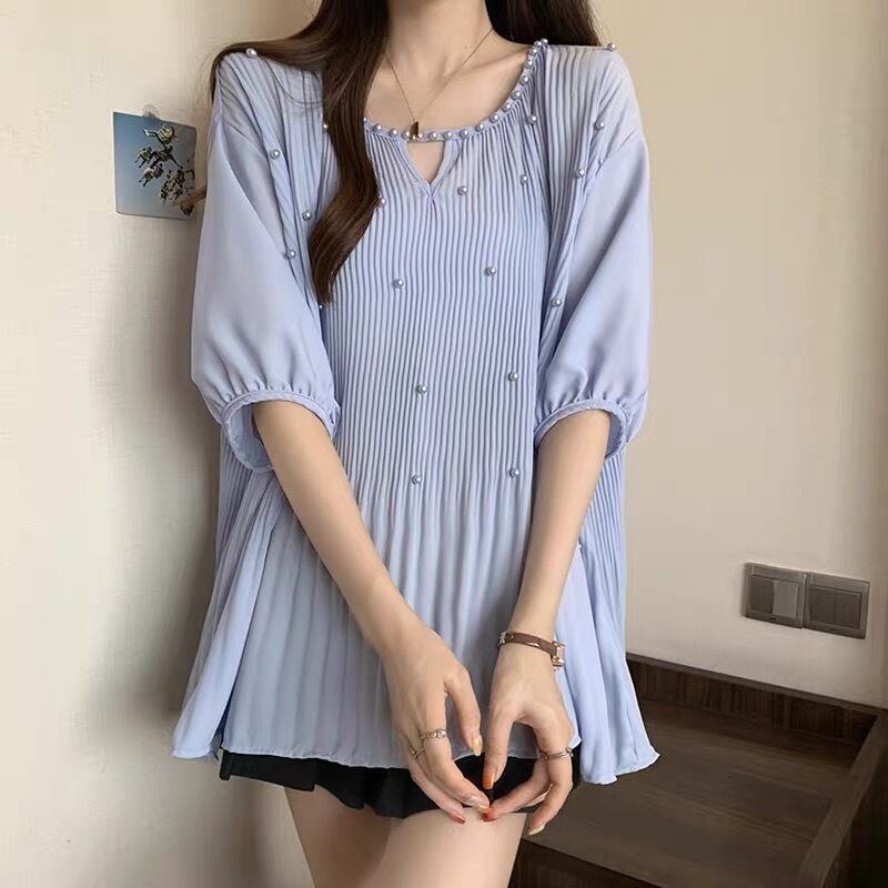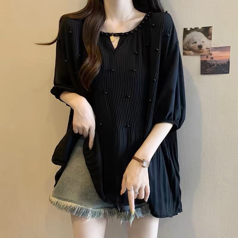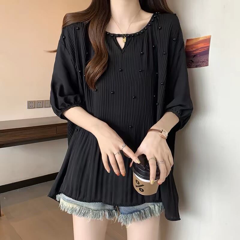 【tops】M〜2XLゆったりパールトップス3色 JY7223