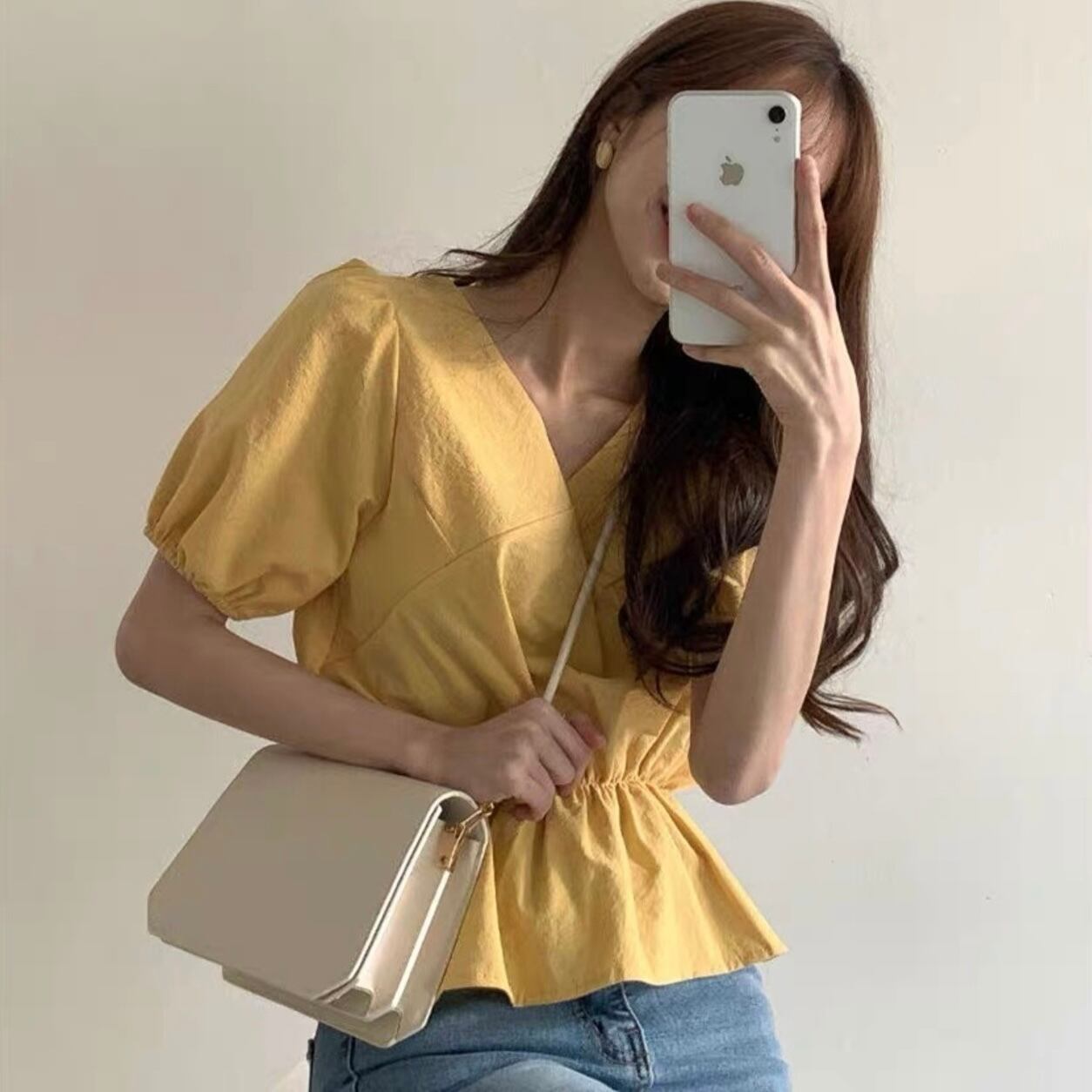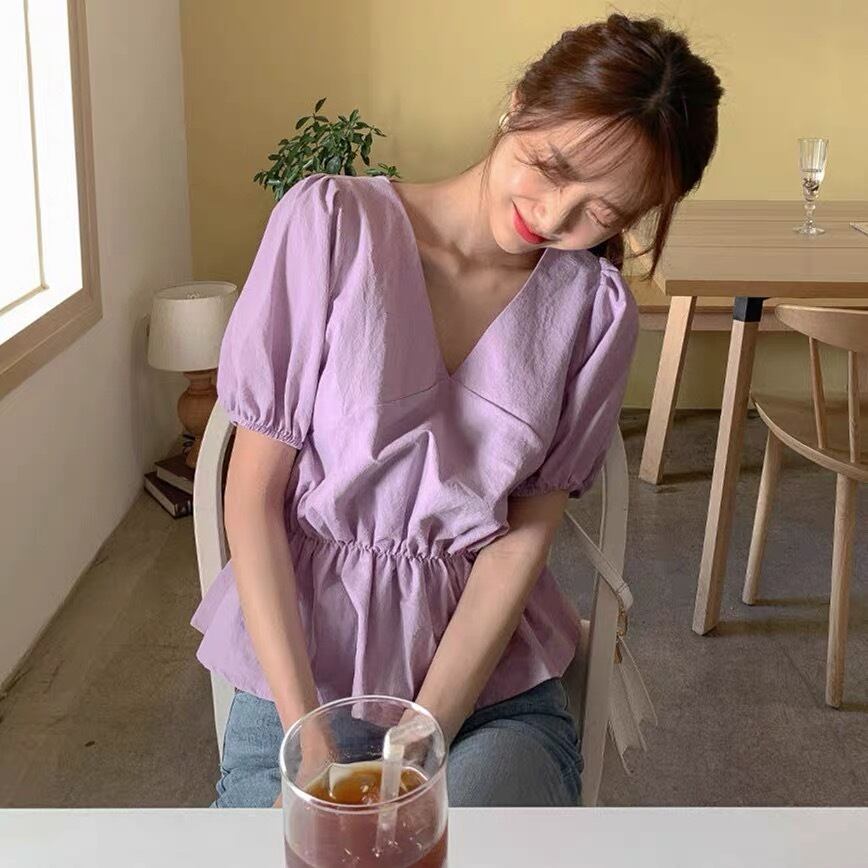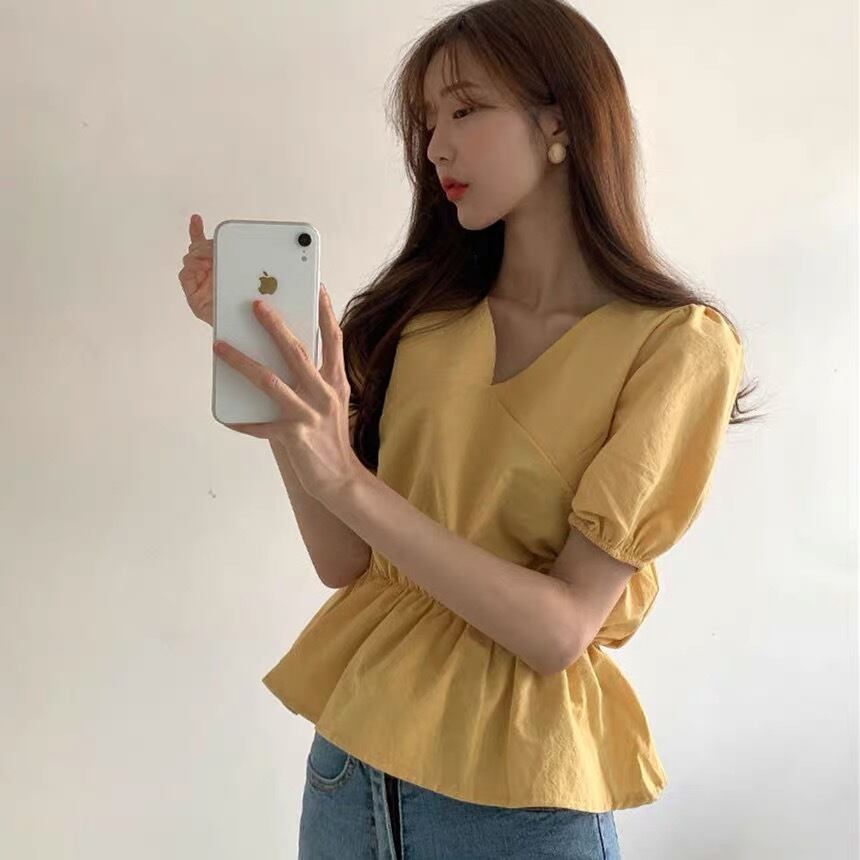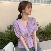 【tops】Vネックパフスリーブトップス2色 JY7260