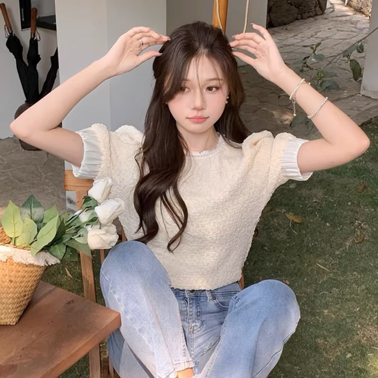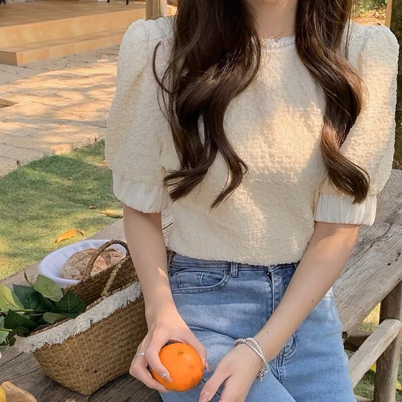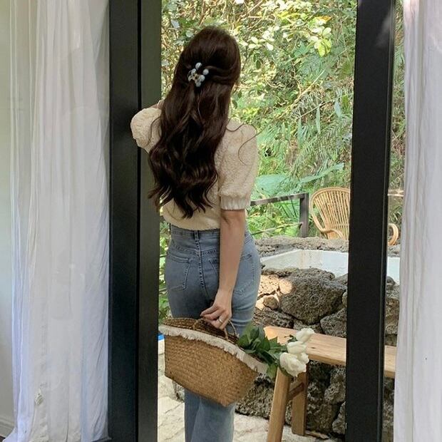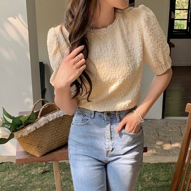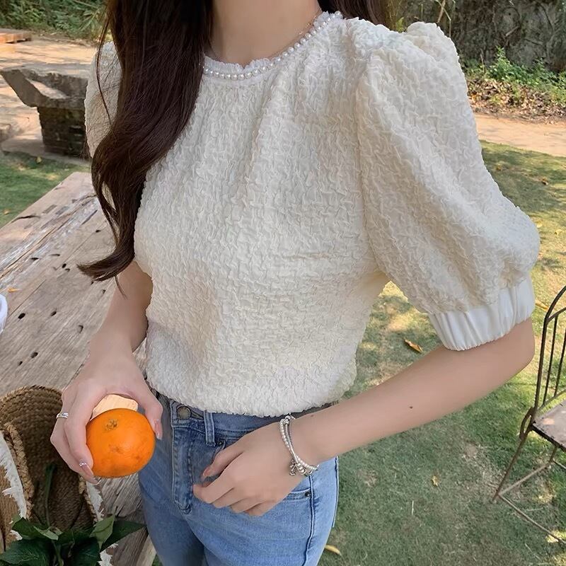 【tops】パール付きパフスリーブトップス JY7261
