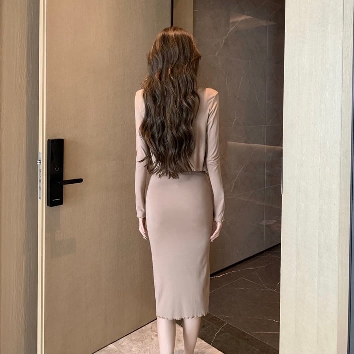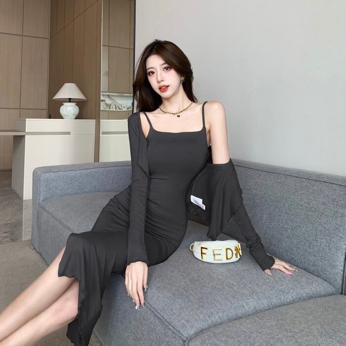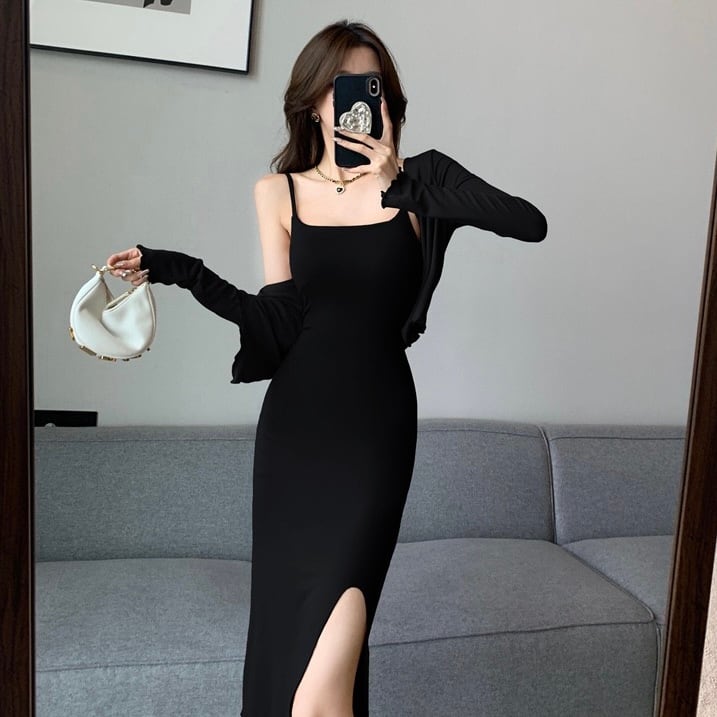 【set】スリット入りキャミワンピースxカーディガン3色 ZM7284
