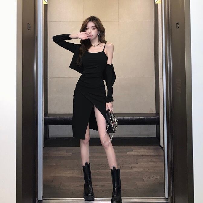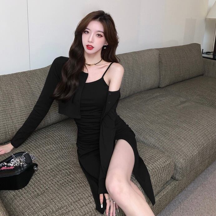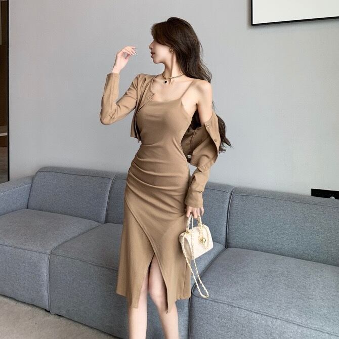 【dress】デザインキャミワンピースxカーディガン3色 ZM7286