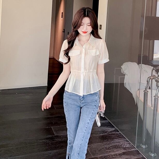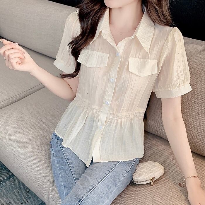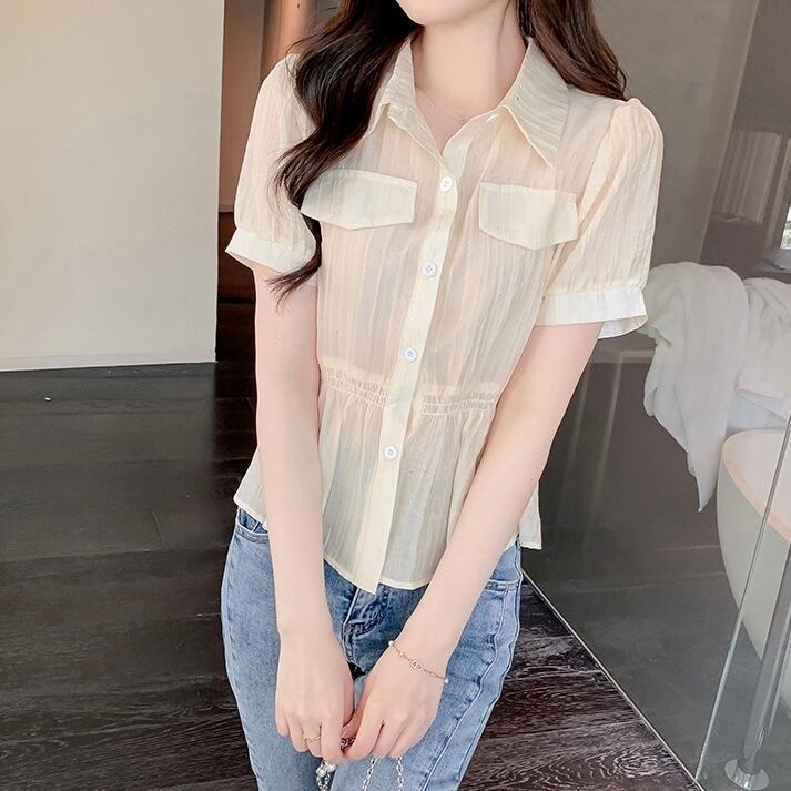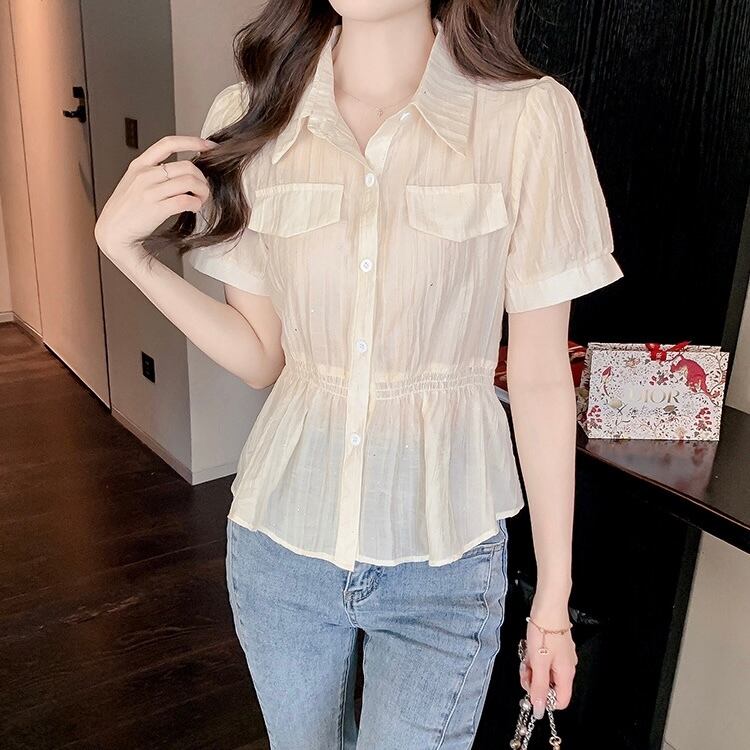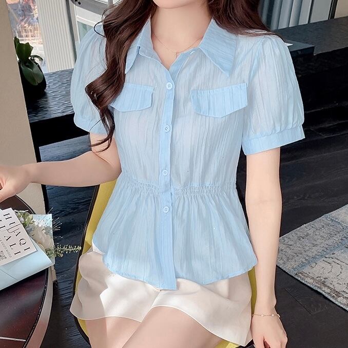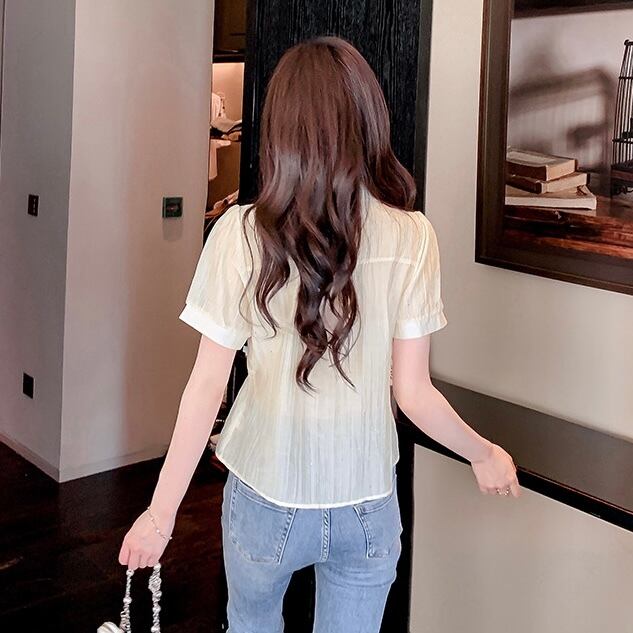 【tops】S〜2XLエレガント襟付きトップス2色 JY7282
