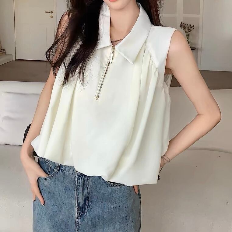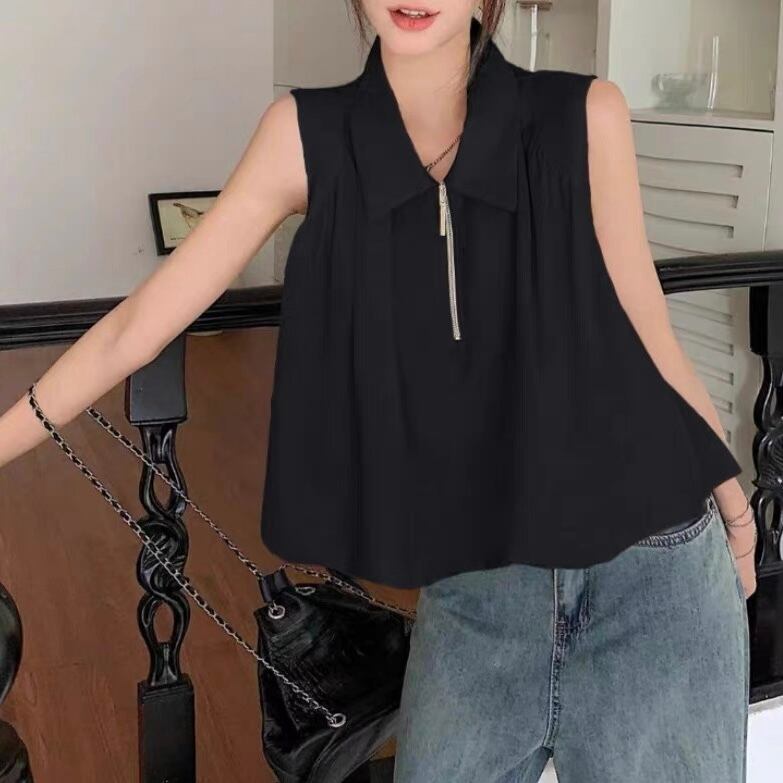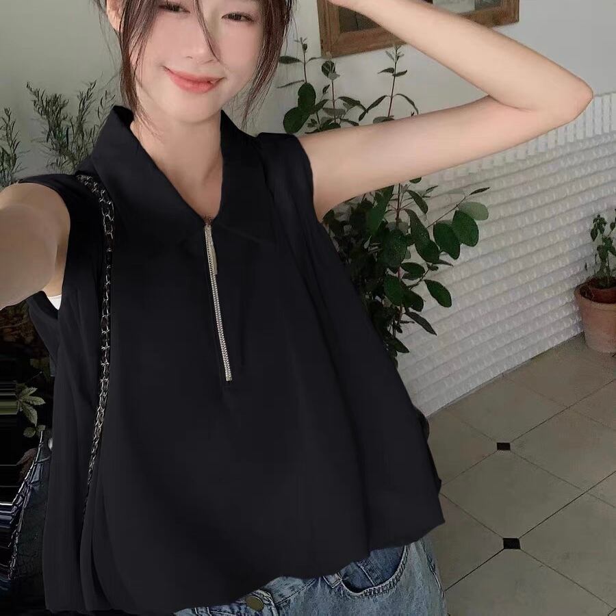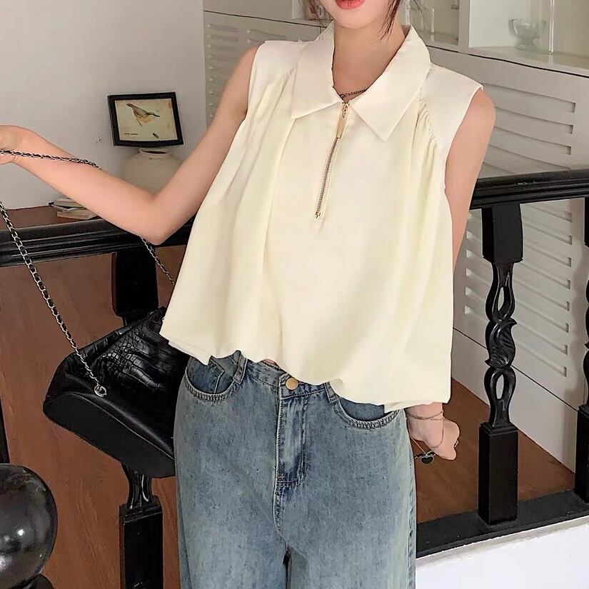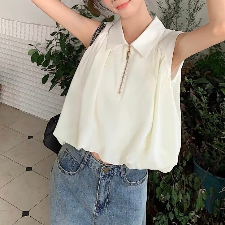 【tops】S〜XL襟付きファスナートップス2色 SY7280