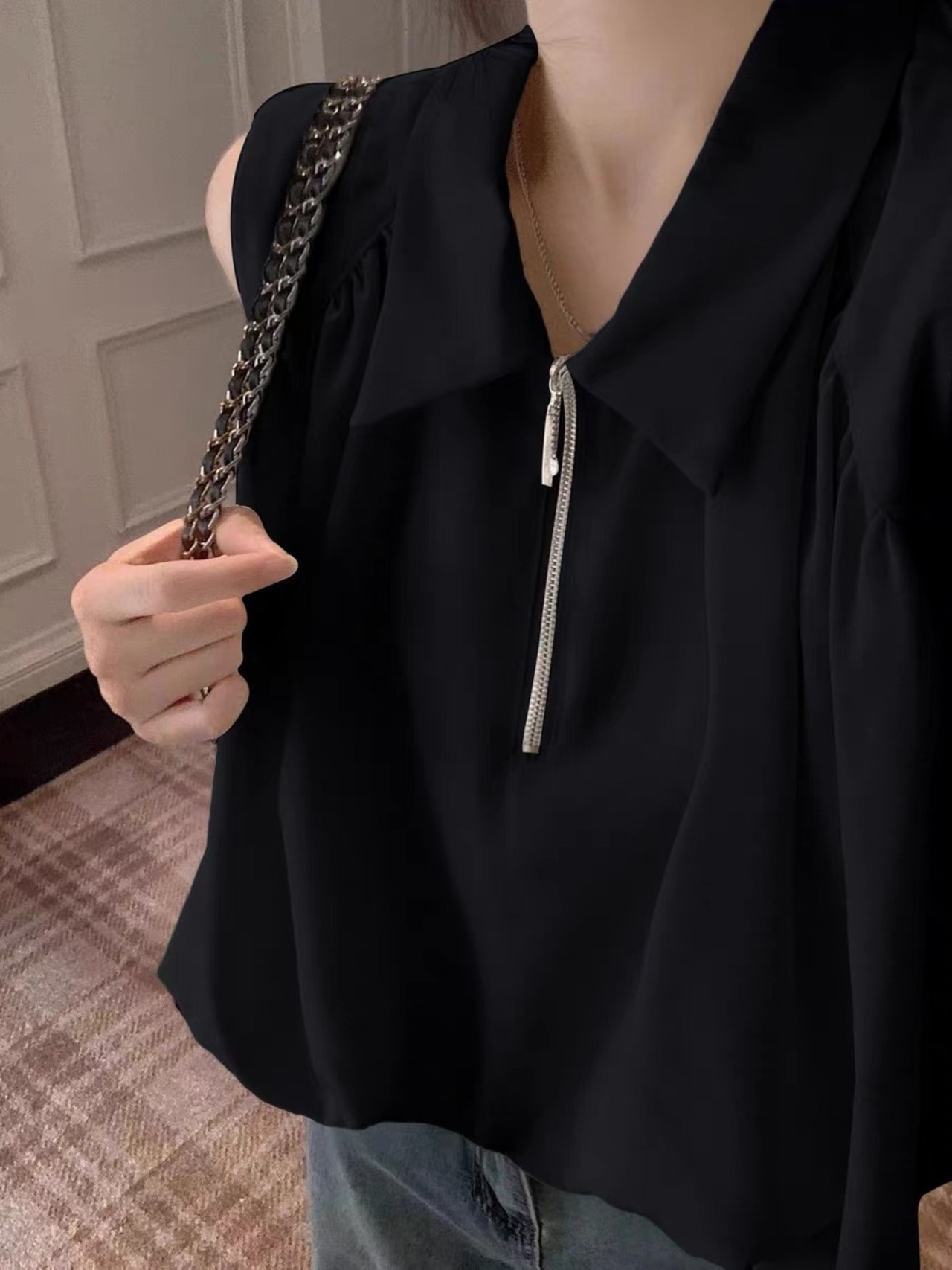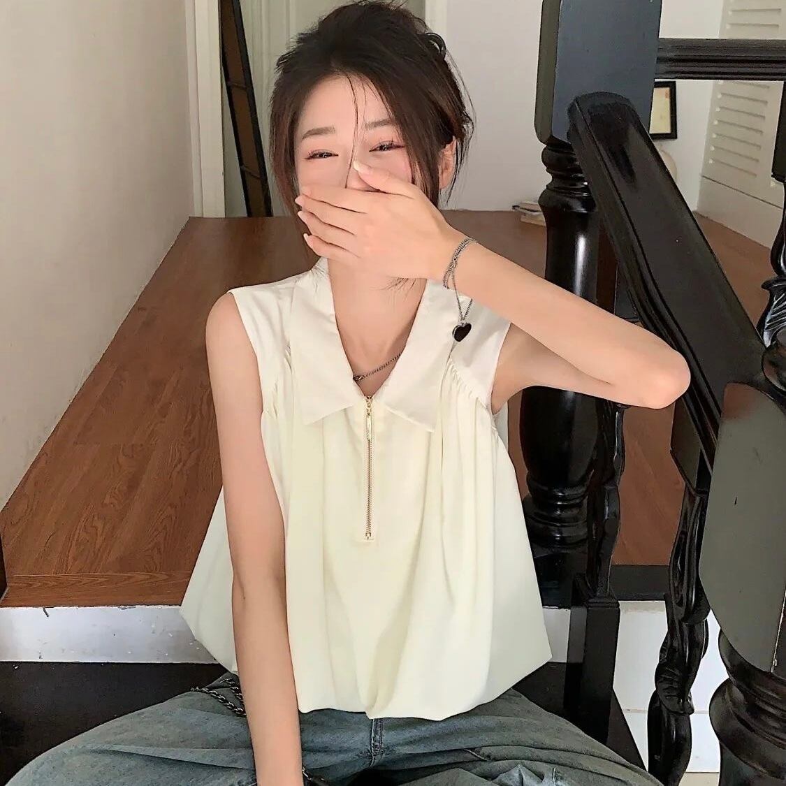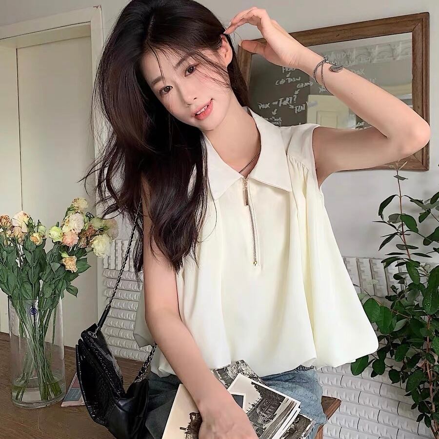 【tops】S〜XL襟付きファスナートップス2色 SY7280