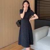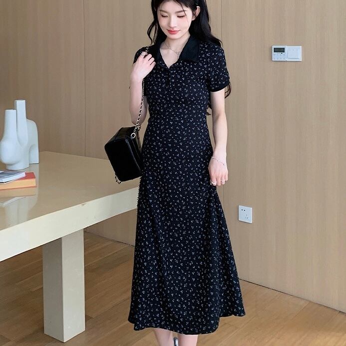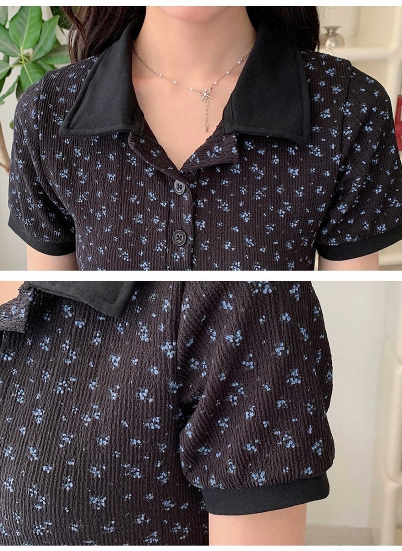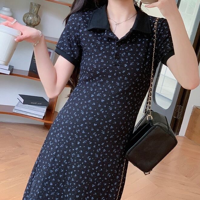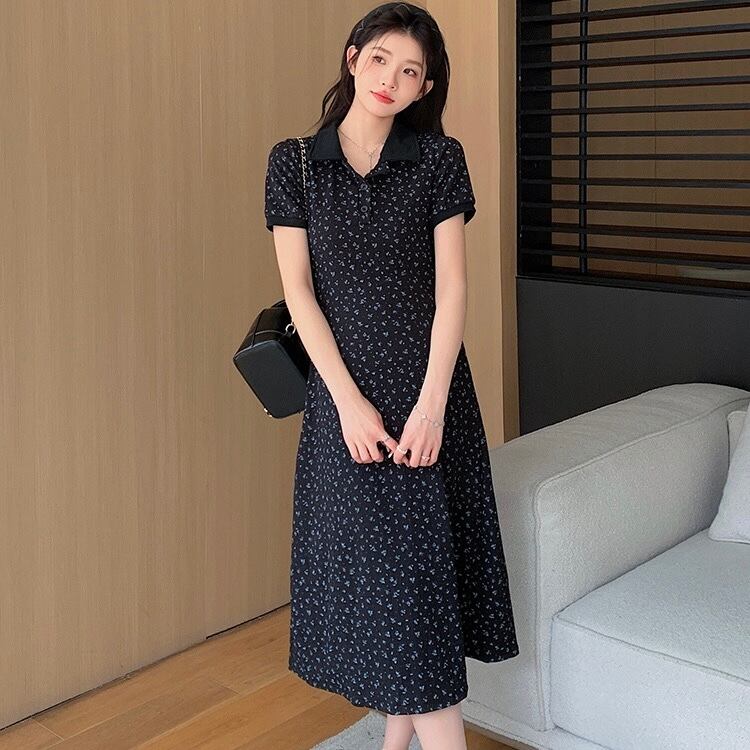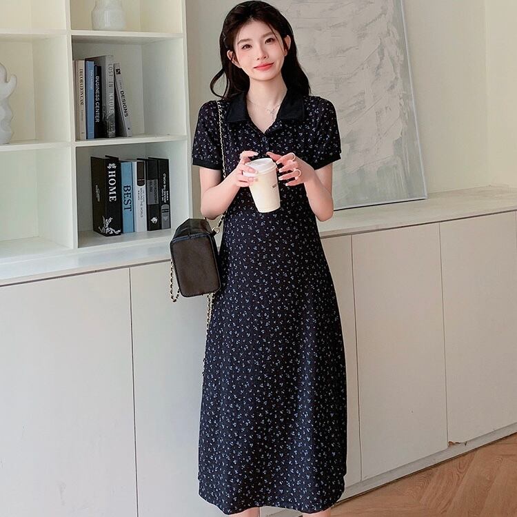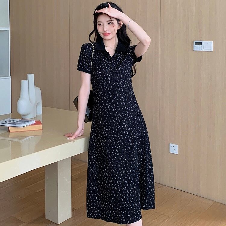【dress】M〜3XLフラワー柄襟付きワンピース JY7290