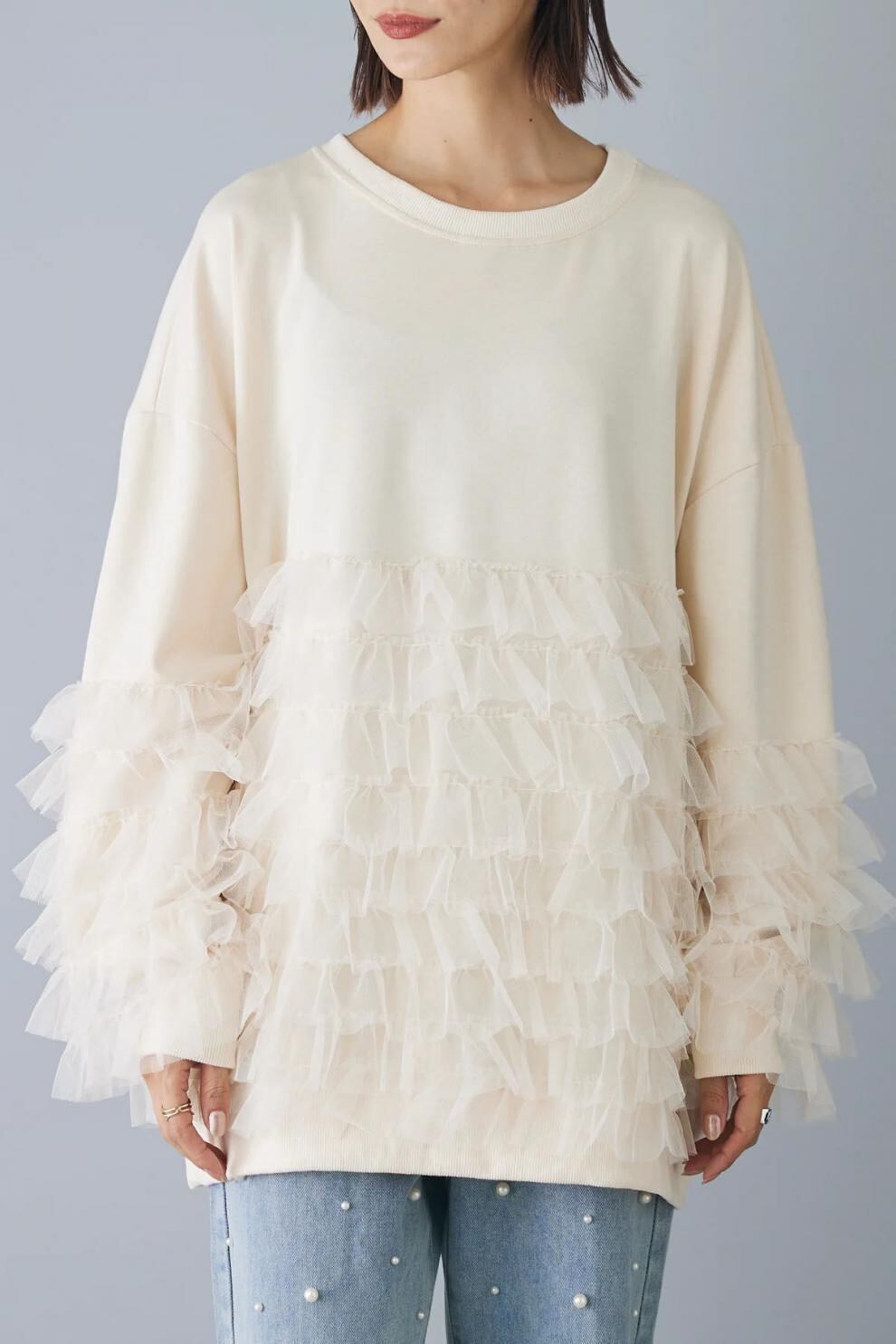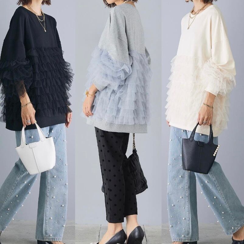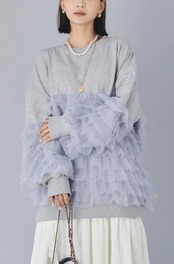 【tops】チュール切り替えパーカー3色 JY8101