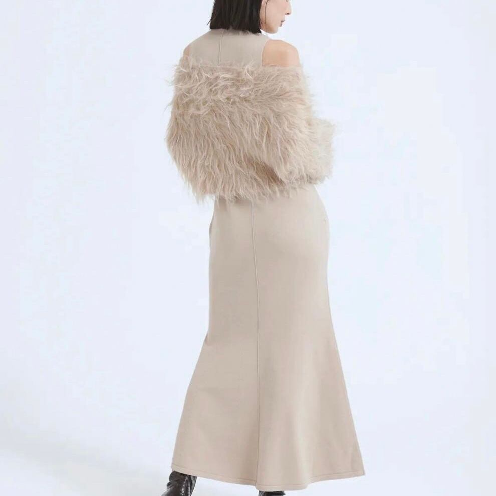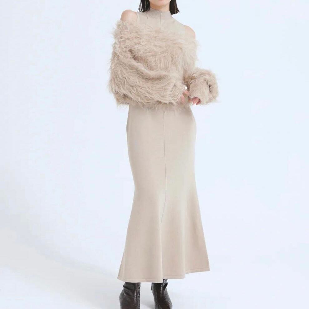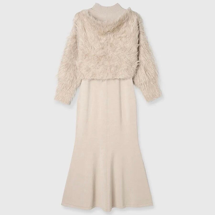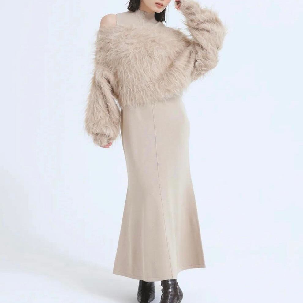 【set】フェイクファートップスxノースリーブニットワンピース JY8106