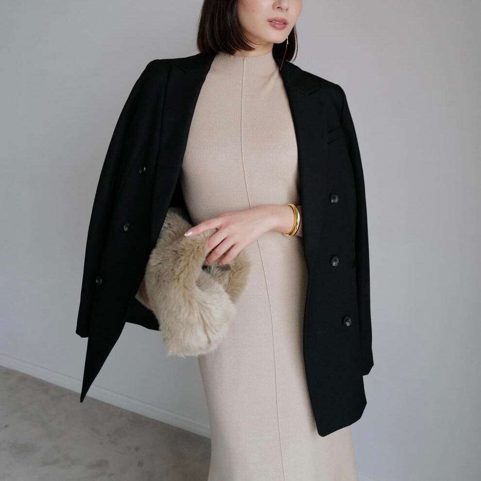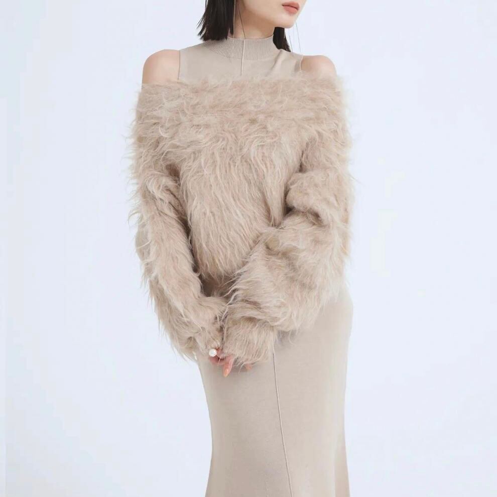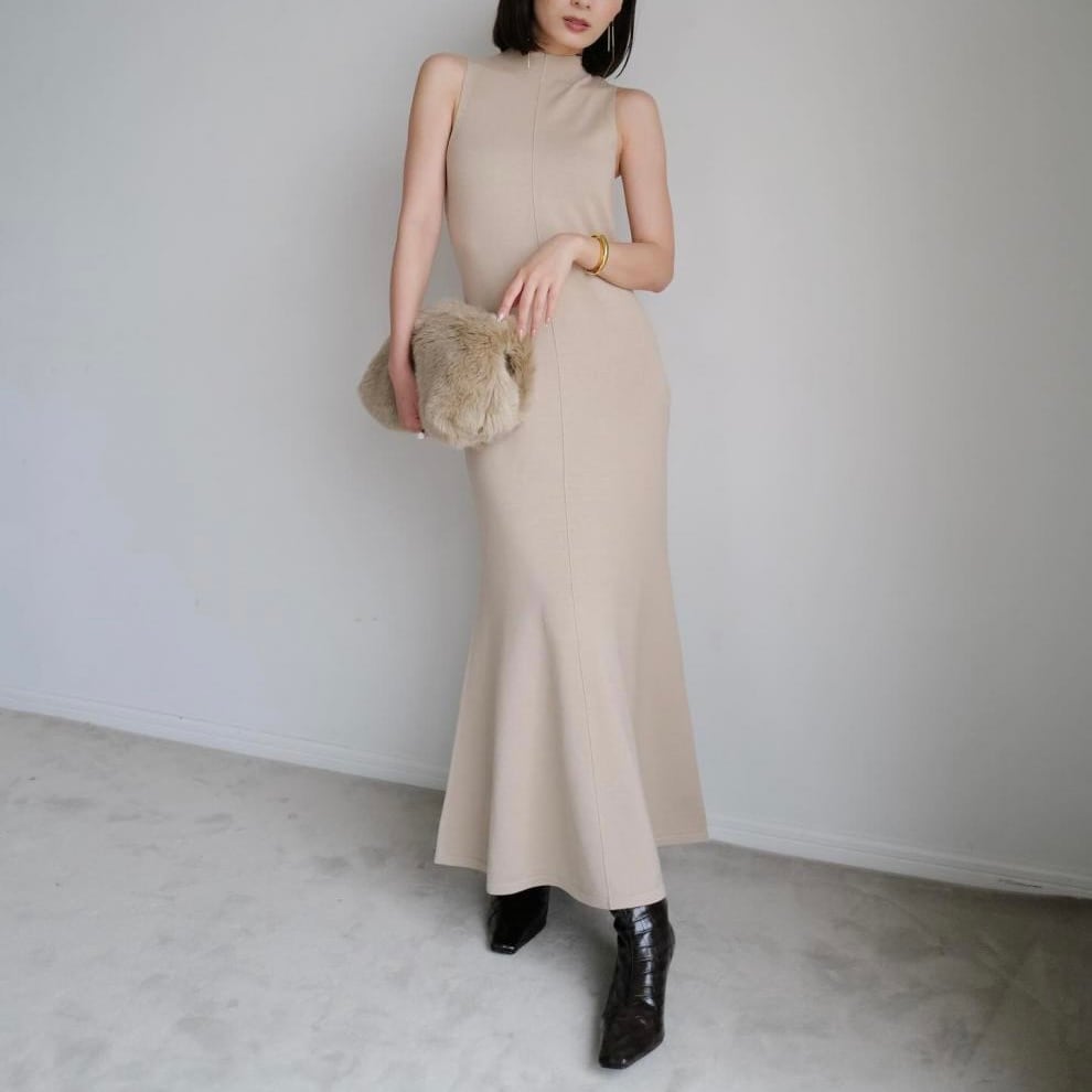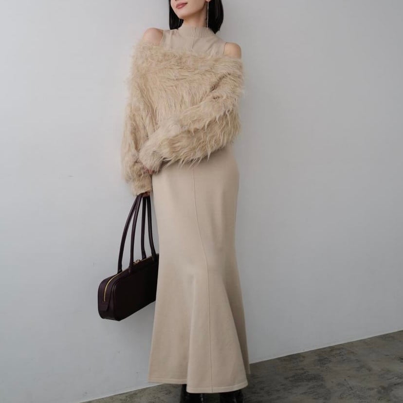 【set】フェイクファートップスxノースリーブニットワンピース JY8106