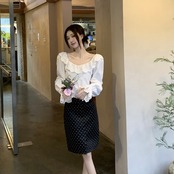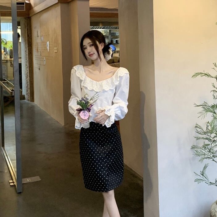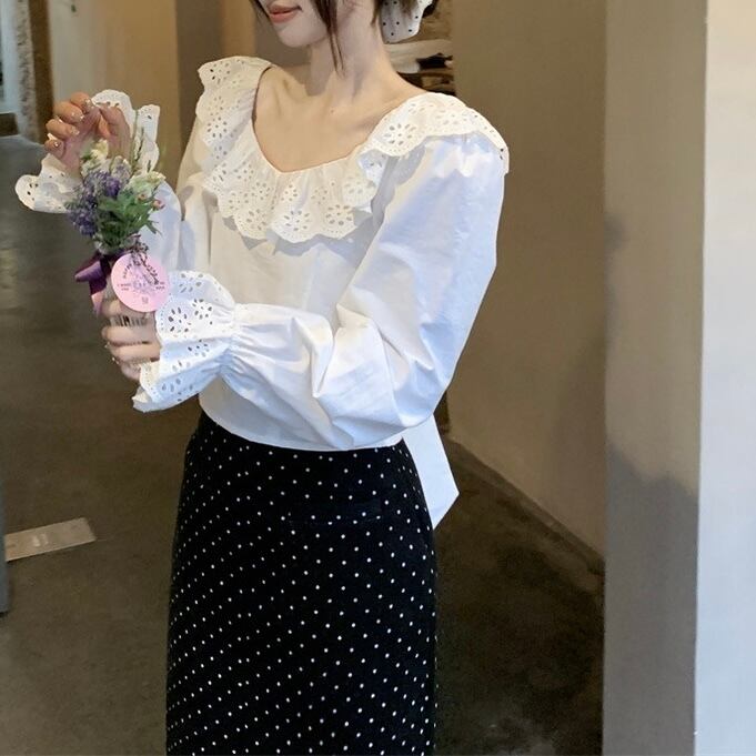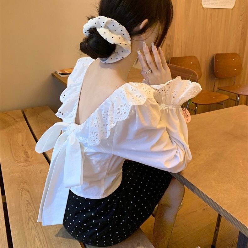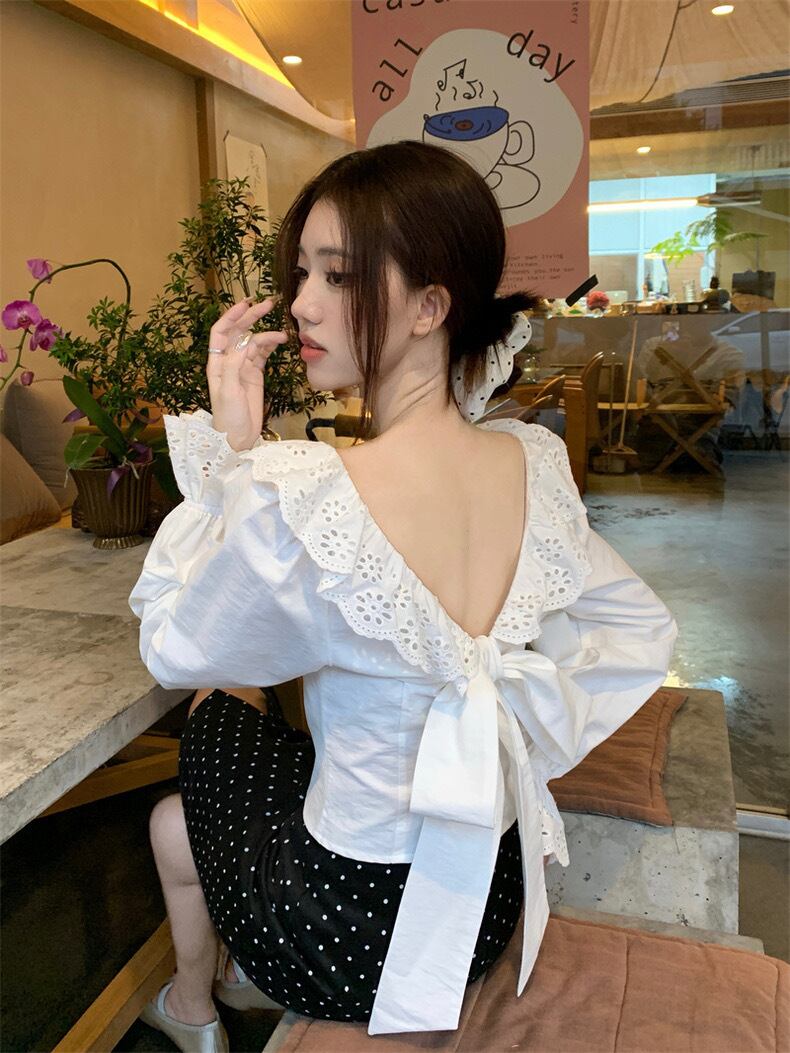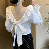 【tops】バックデザインフリルブラウス HX8114