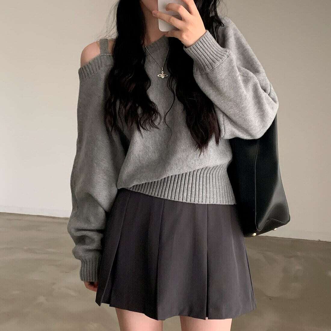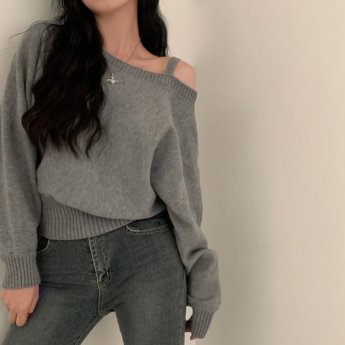 【tops】ワンショルダールーズニット2色 MA0813
