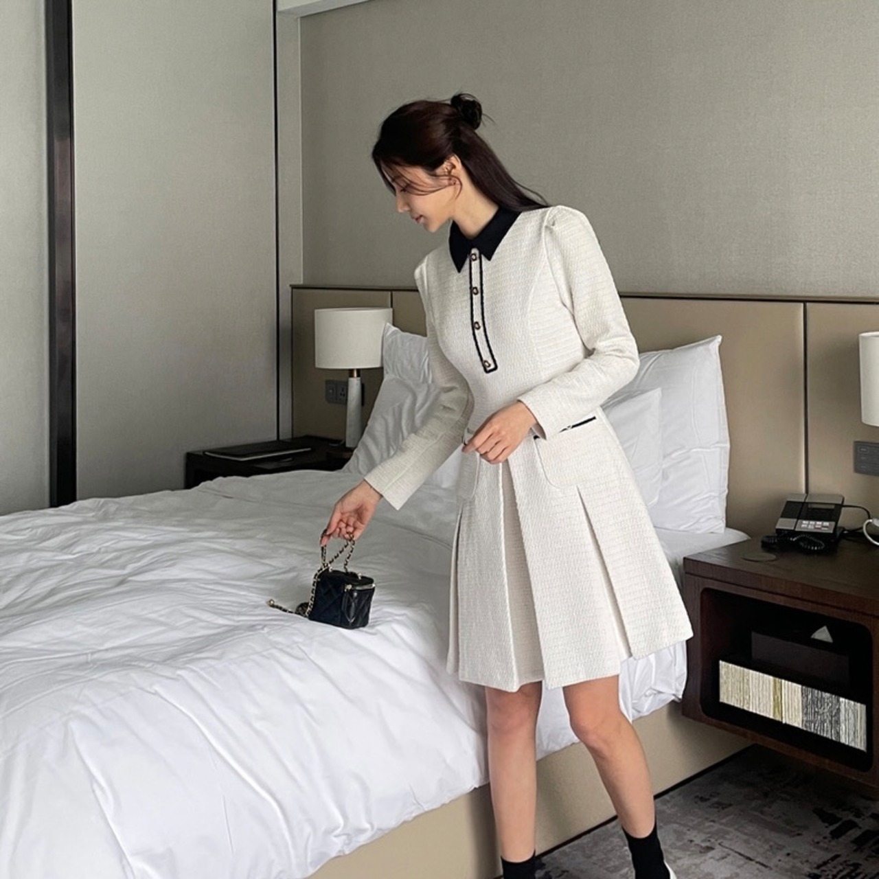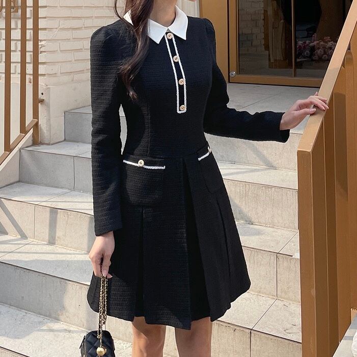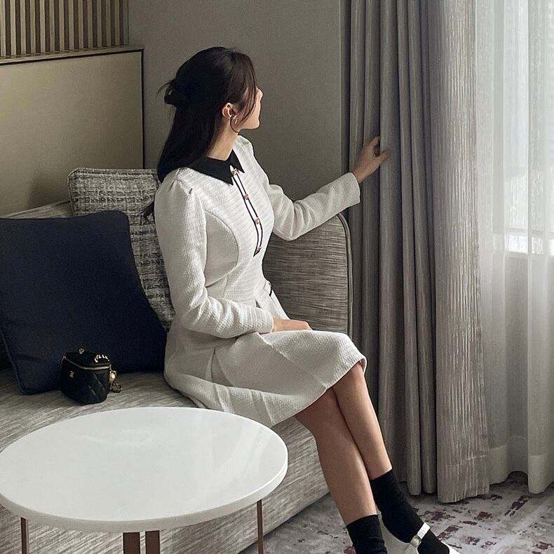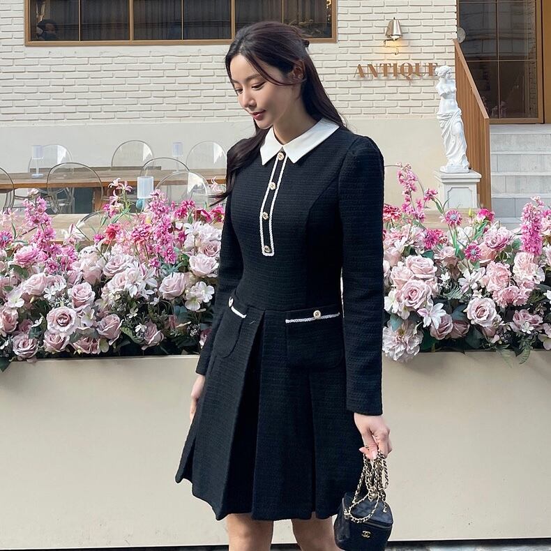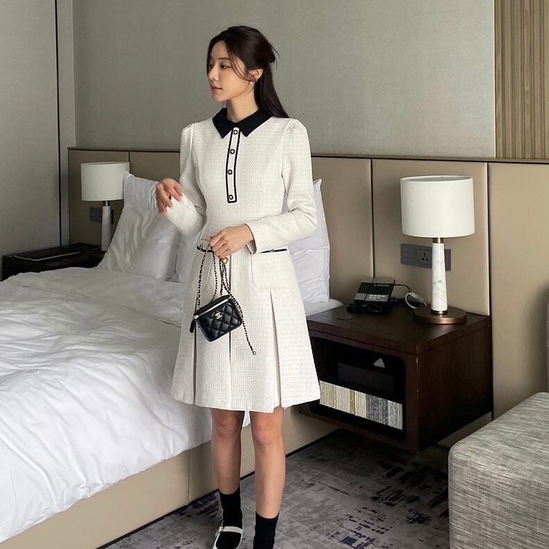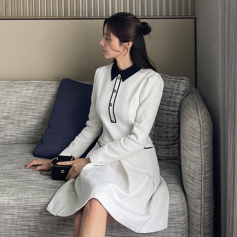 【dress】フレンチ襟付きワンピース2色 HX8116