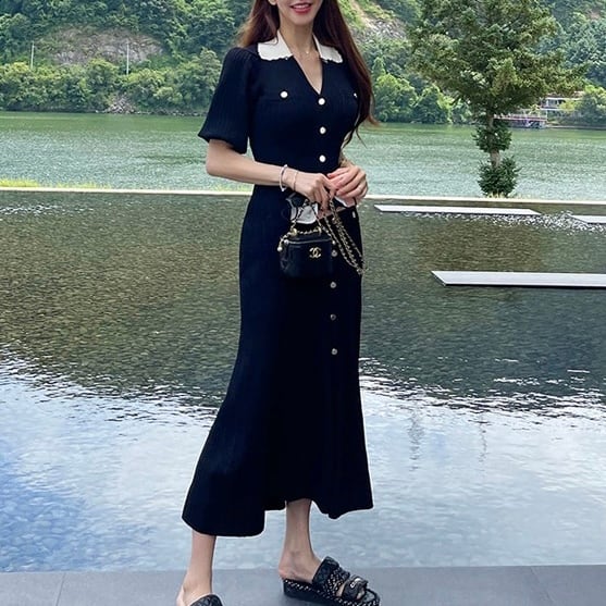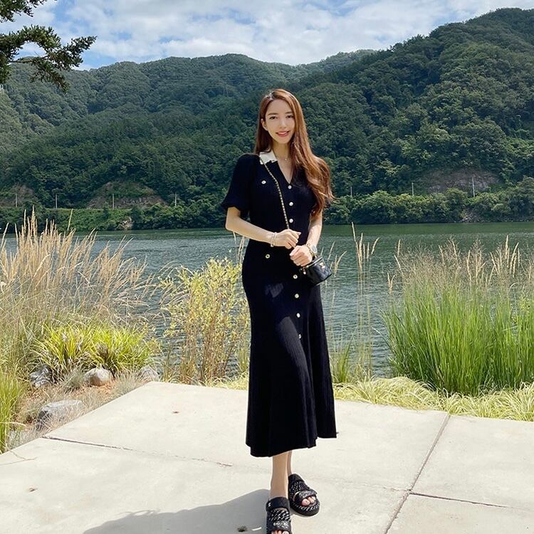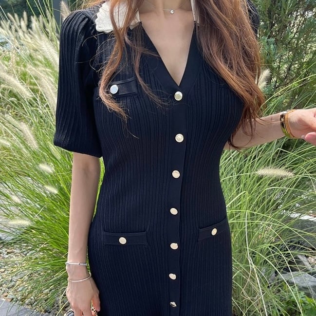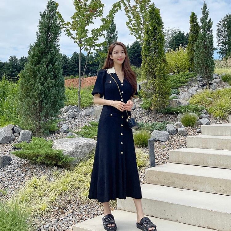 【dress】フロントボタンニットワンピース SY8131