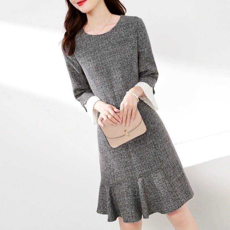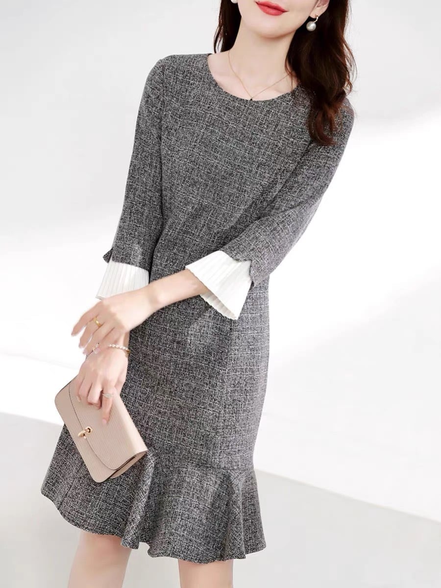 【dress】マーメイド配色ワンピース JY8169