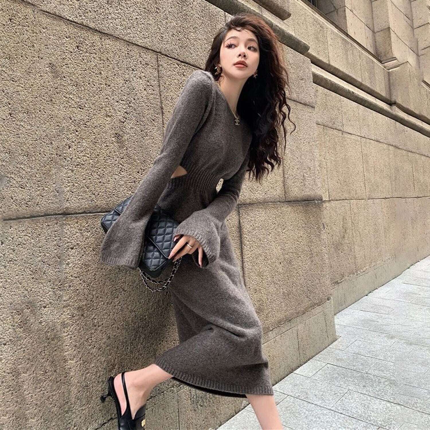 【dress】ウエストカットニットワンピース MA0108