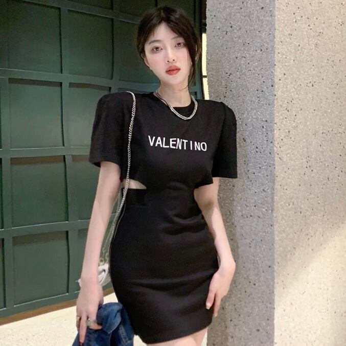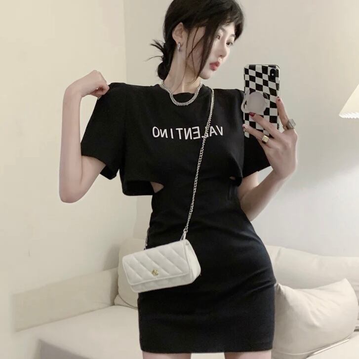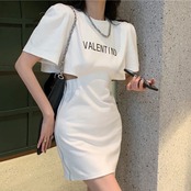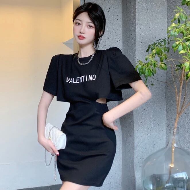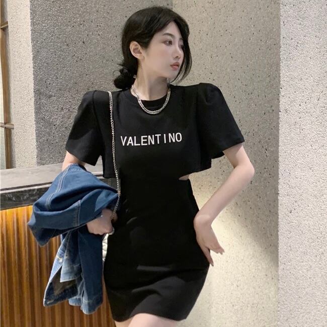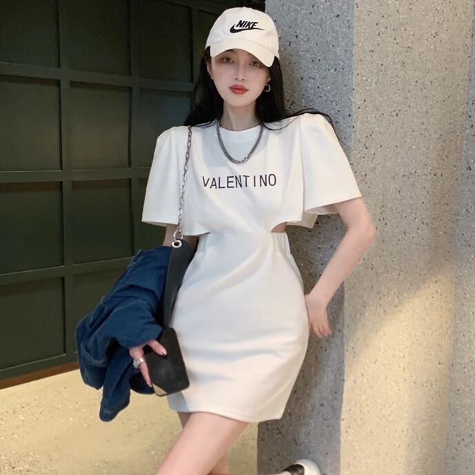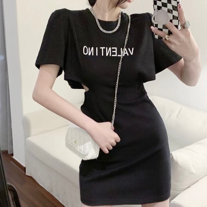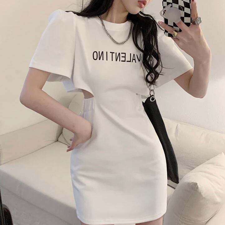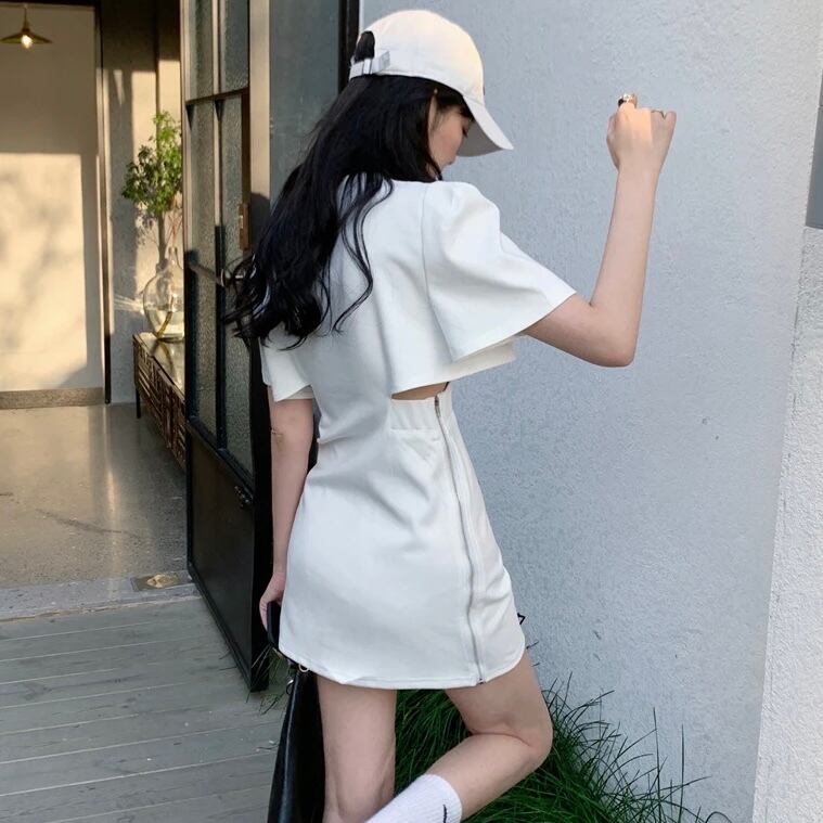 【dress】ウエストオープン半袖ワンピース2色 MA0123
