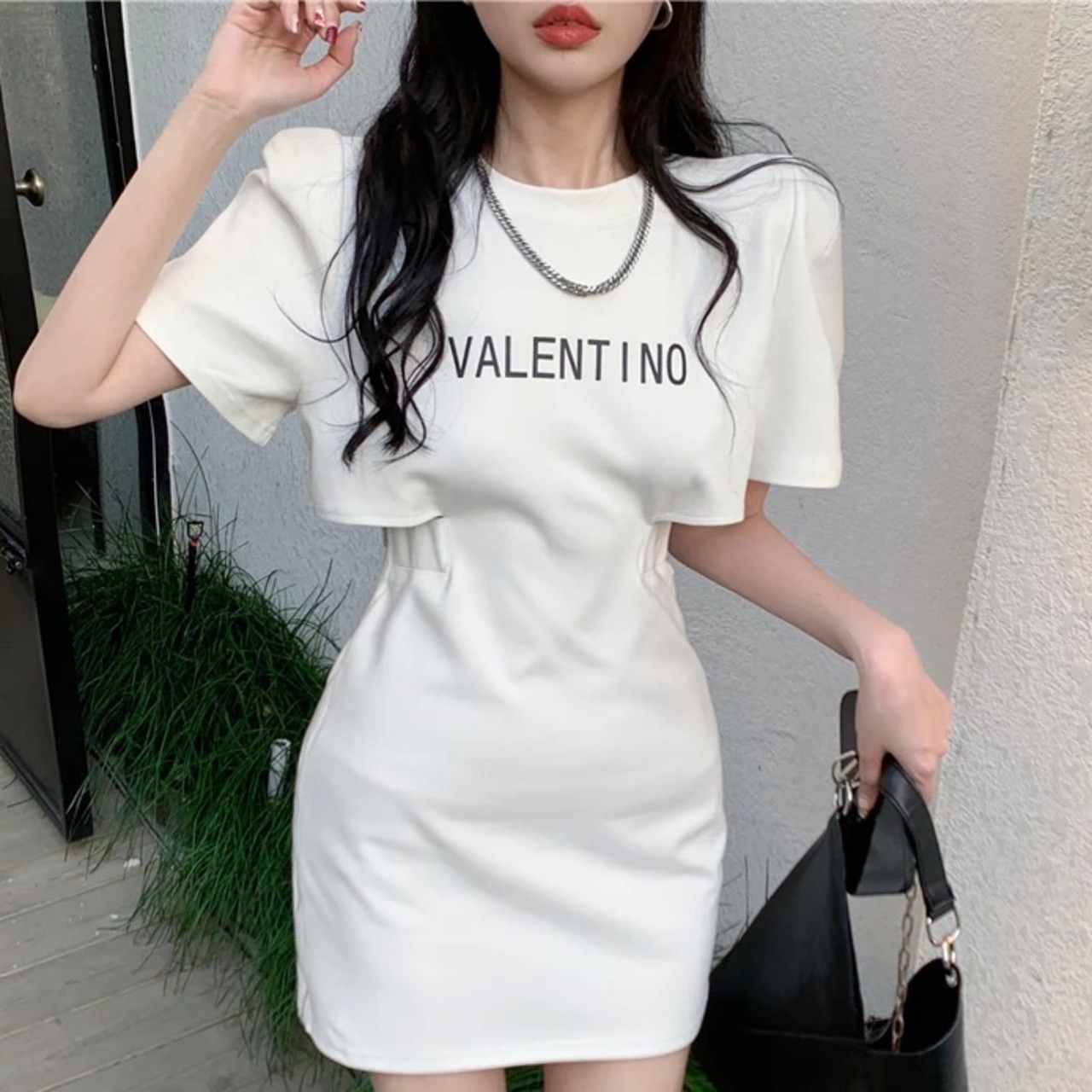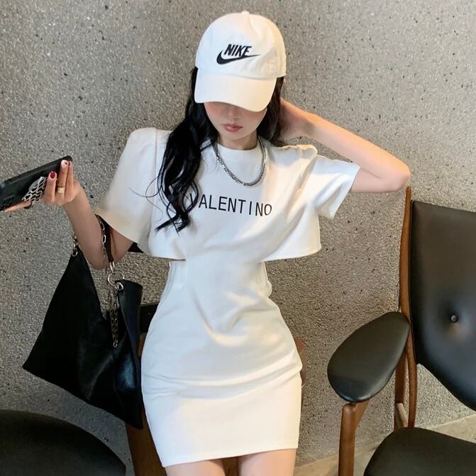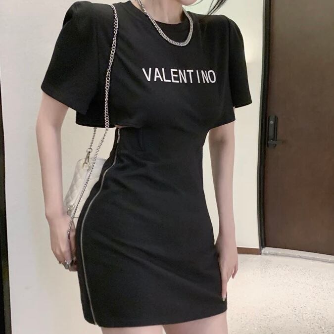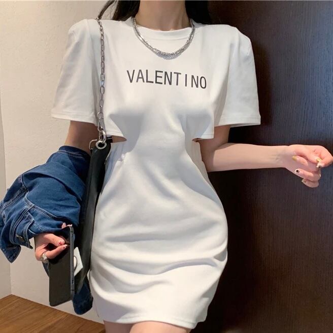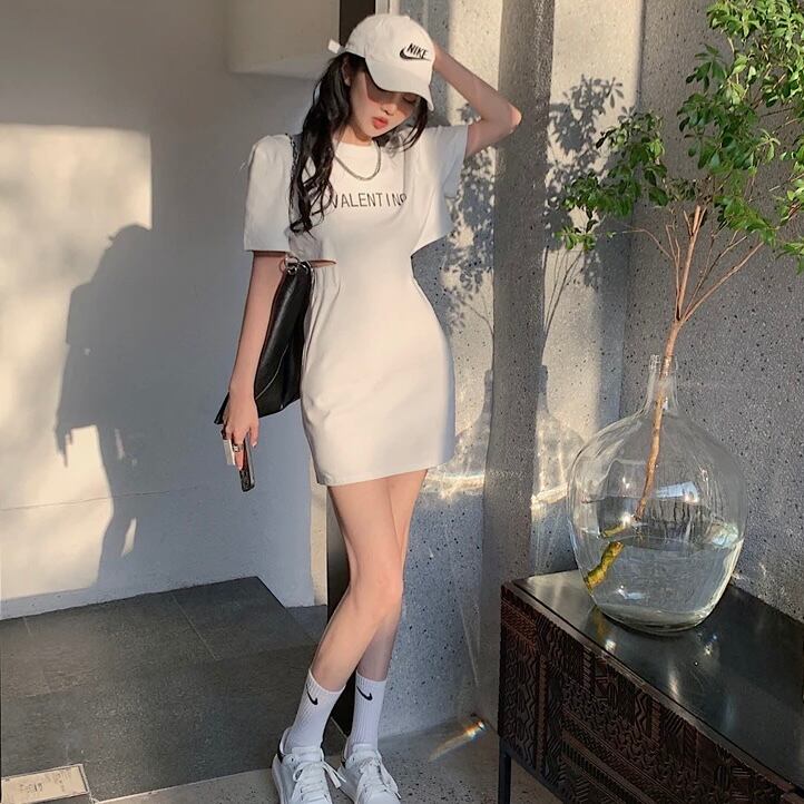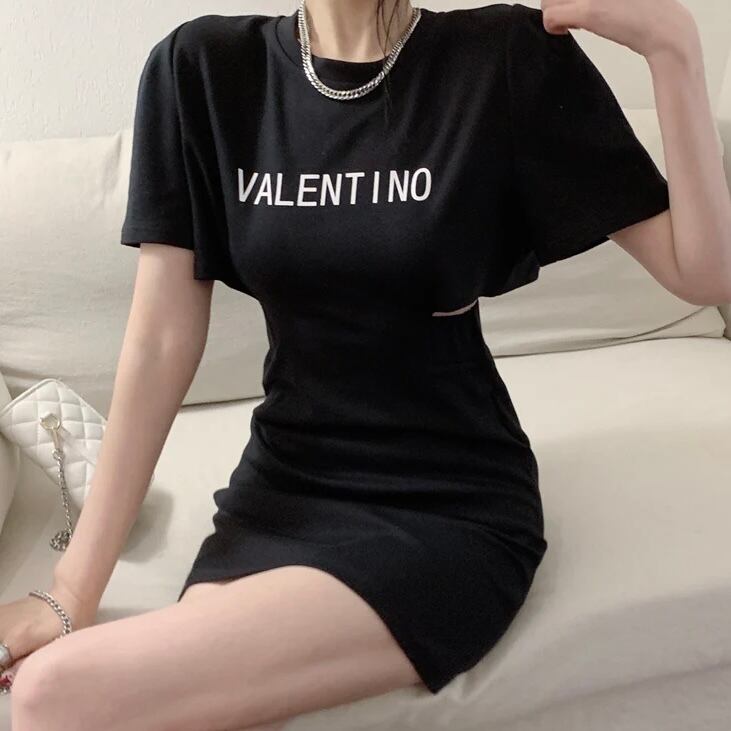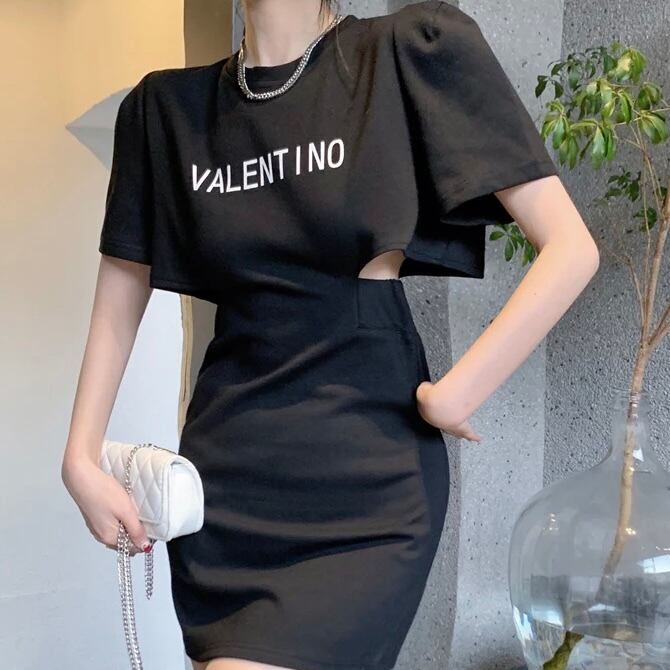 【dress】ウエストオープン半袖ワンピース2色 MA0123
