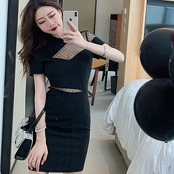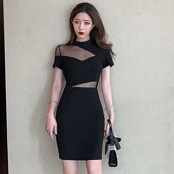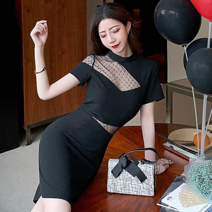 【dress】メッシュ切り替えタイトワンピース MA0127