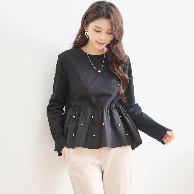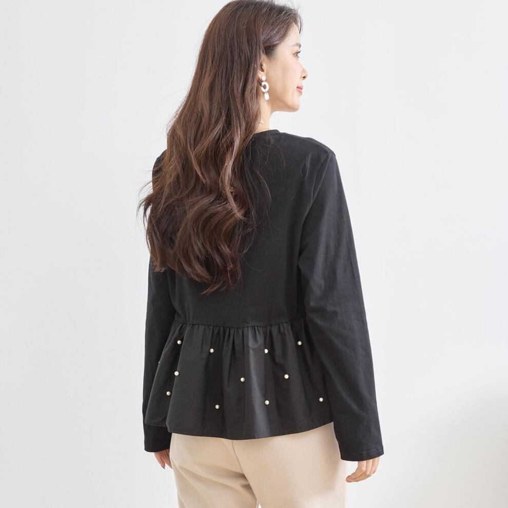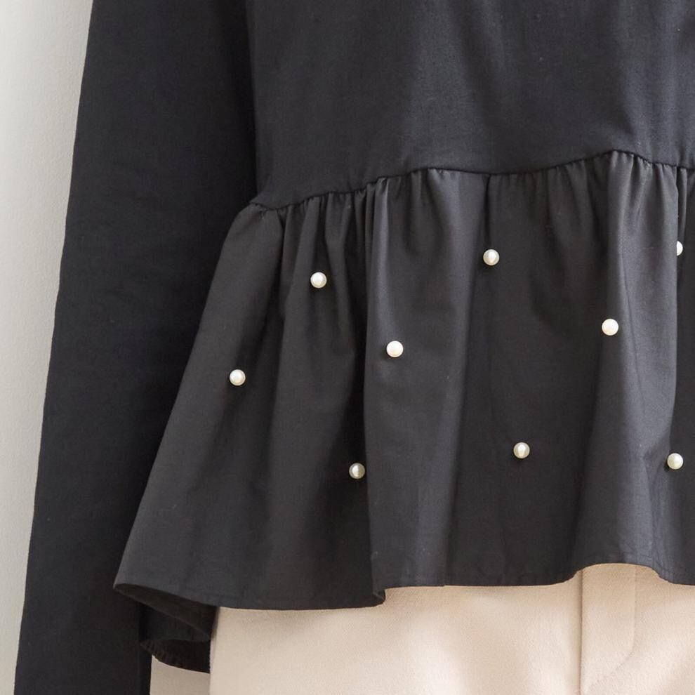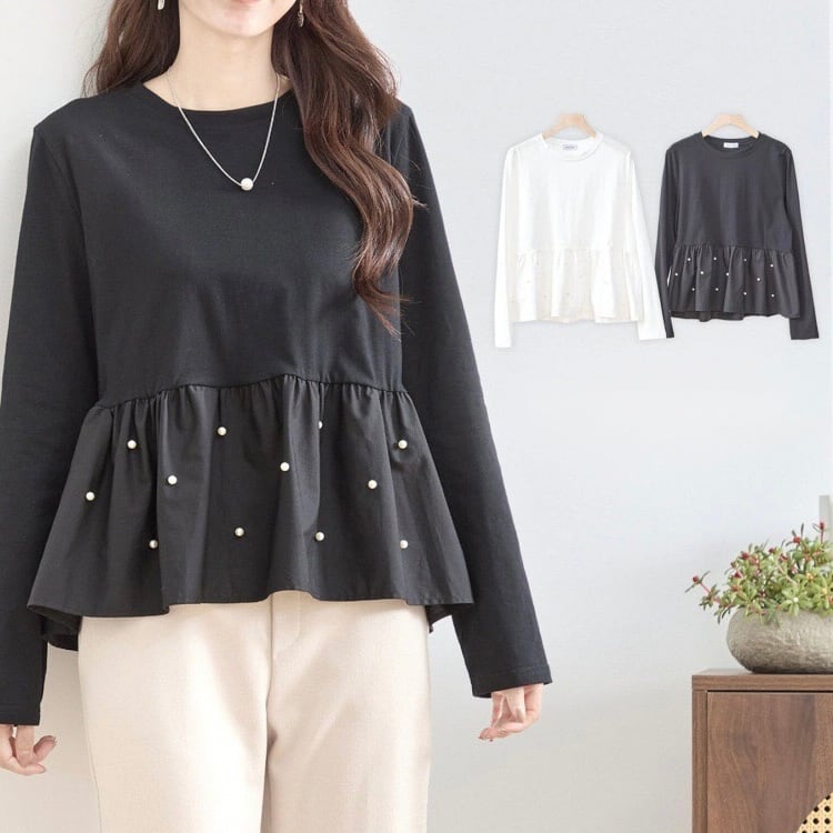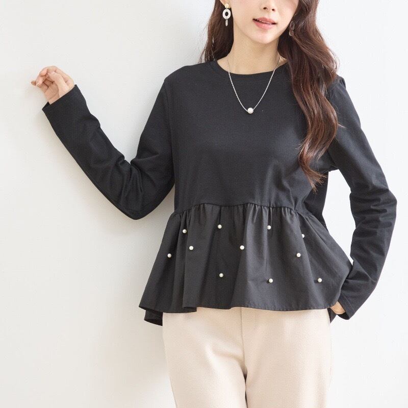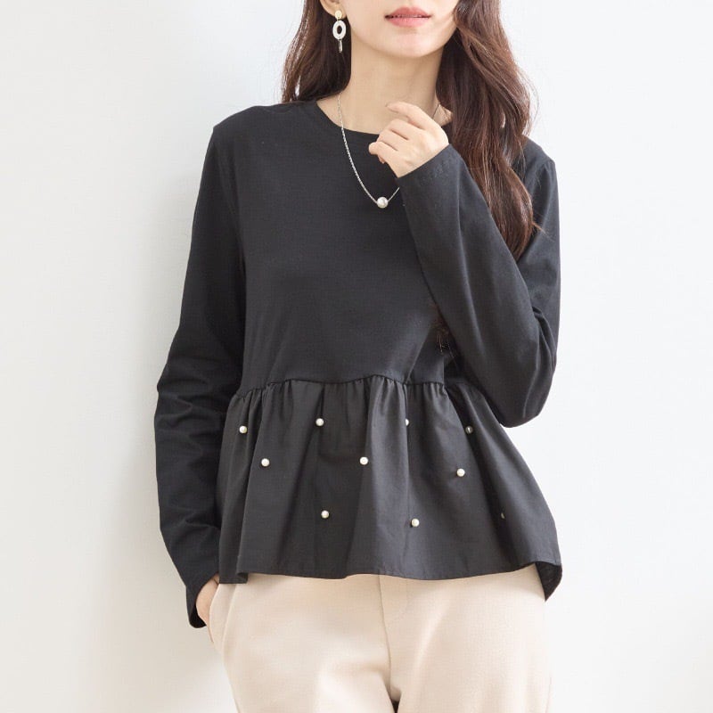 【tops】パール付きぺプラムトップス2色 HX8213