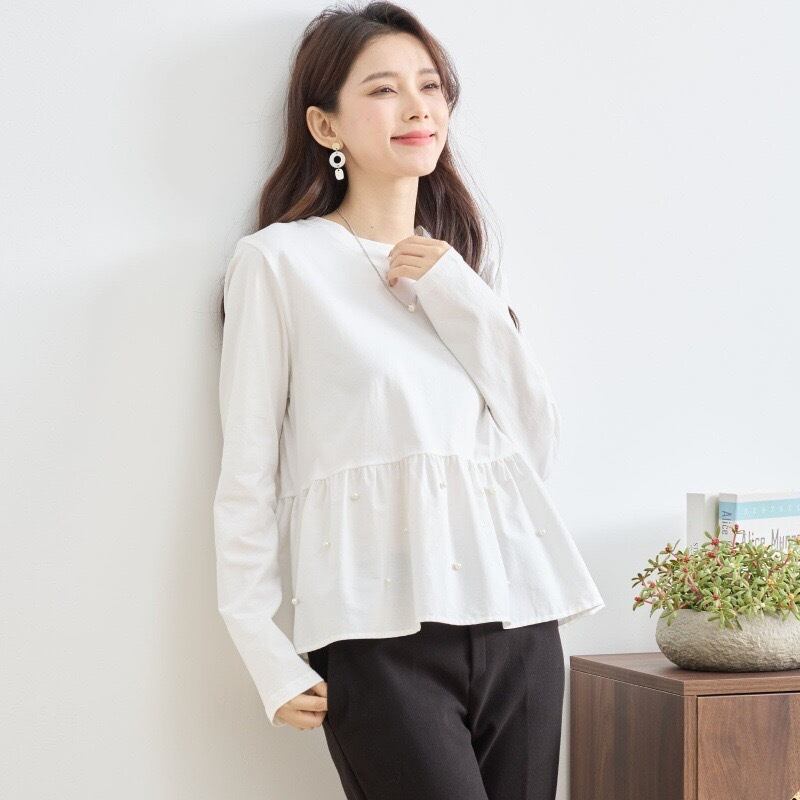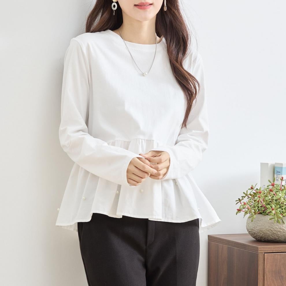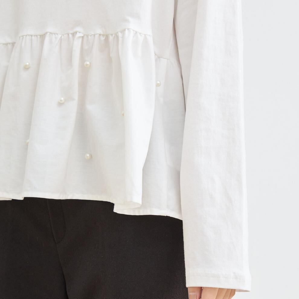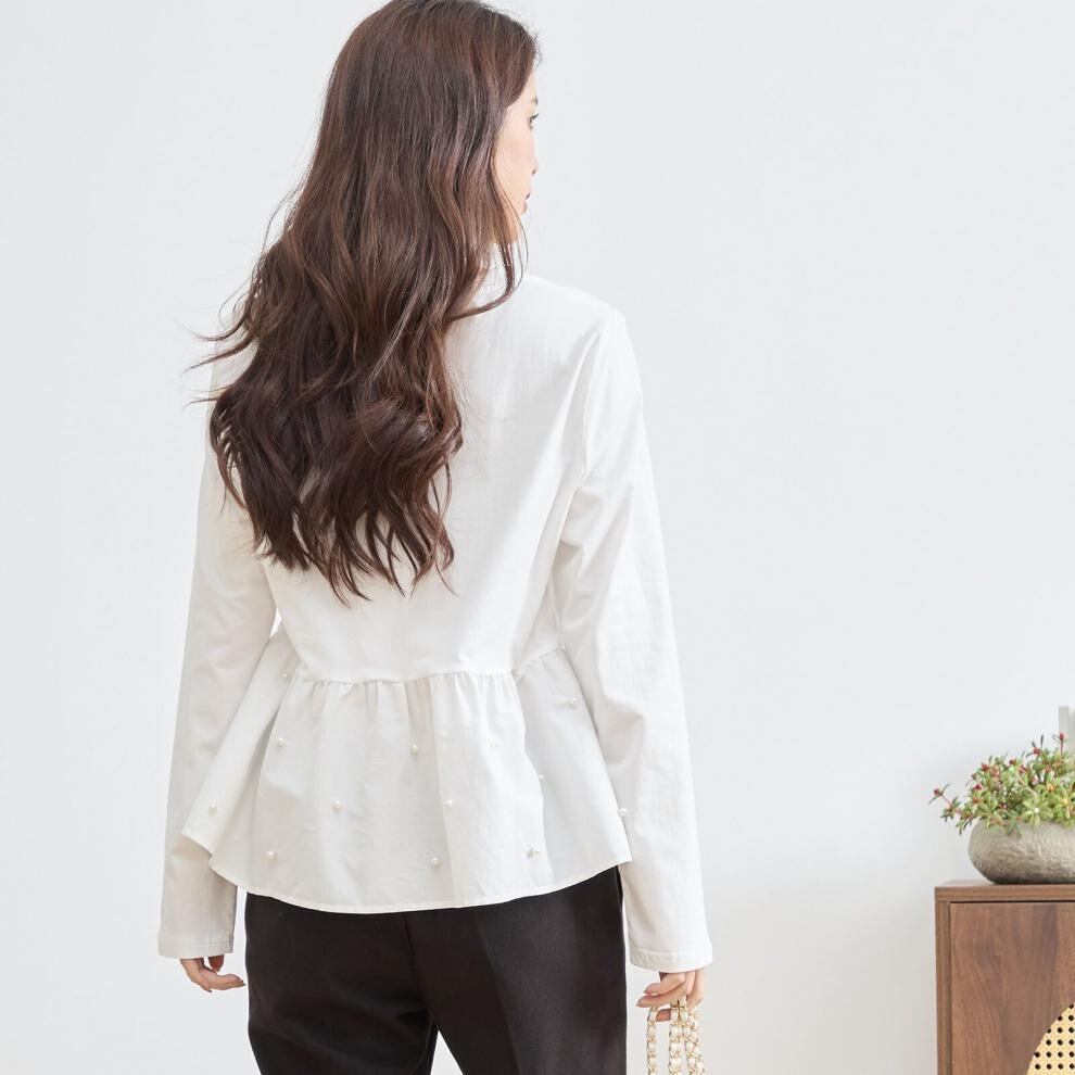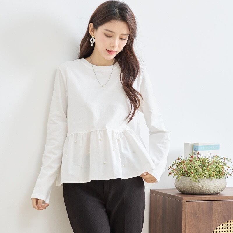 【tops】パール付きぺプラムトップス2色 HX8213