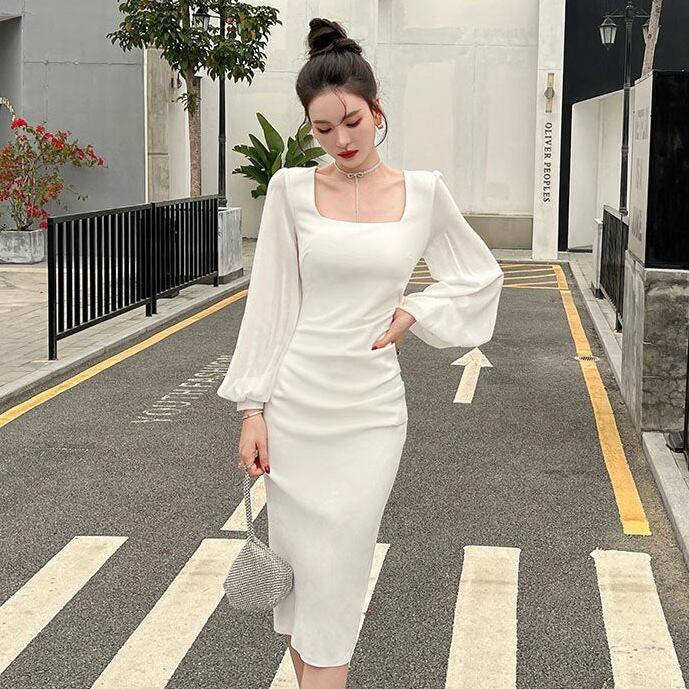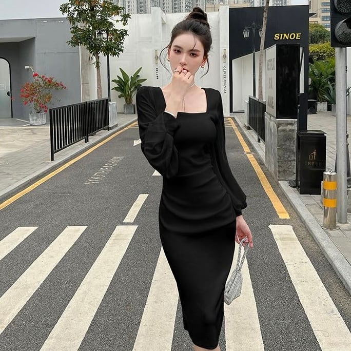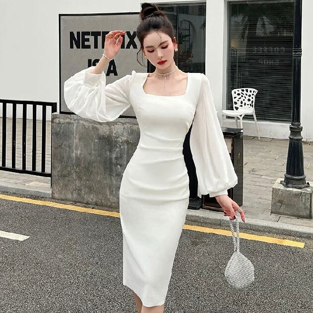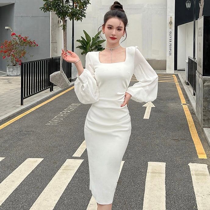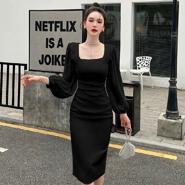 【dress】長袖パフ袖ワンピース2色 MA0129