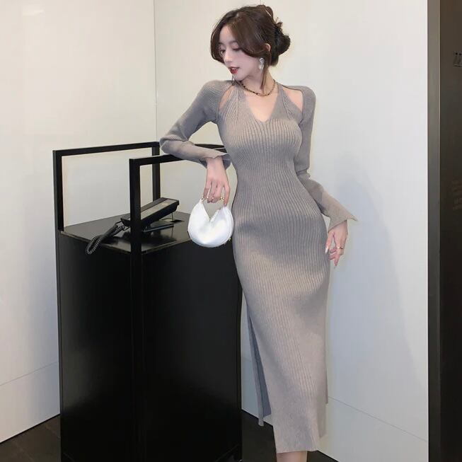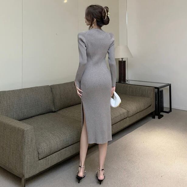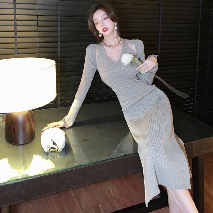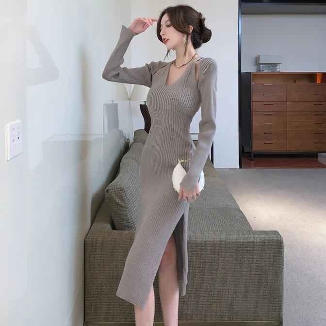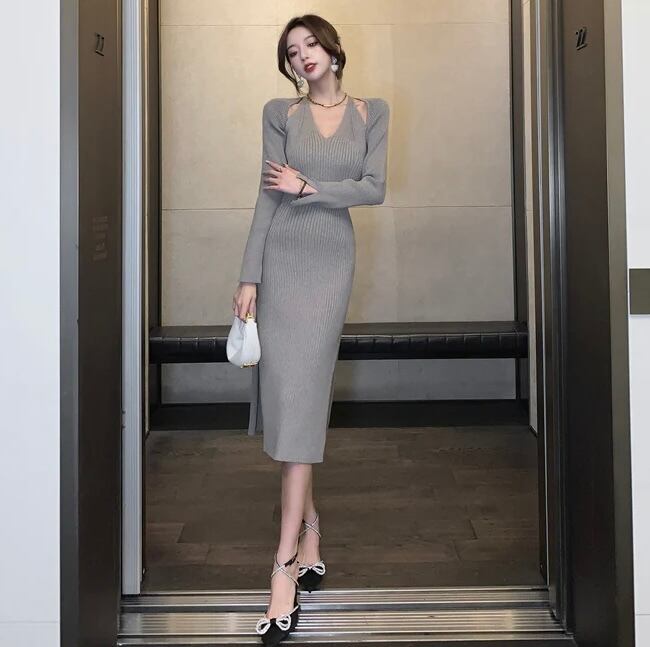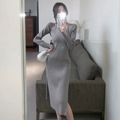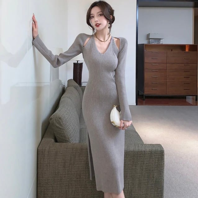 【dress】Vネックニットワンピース MA0132