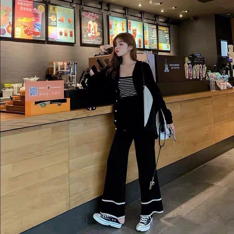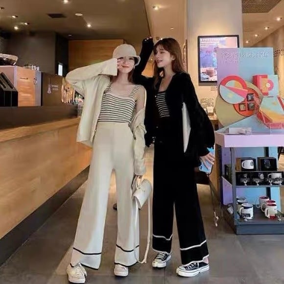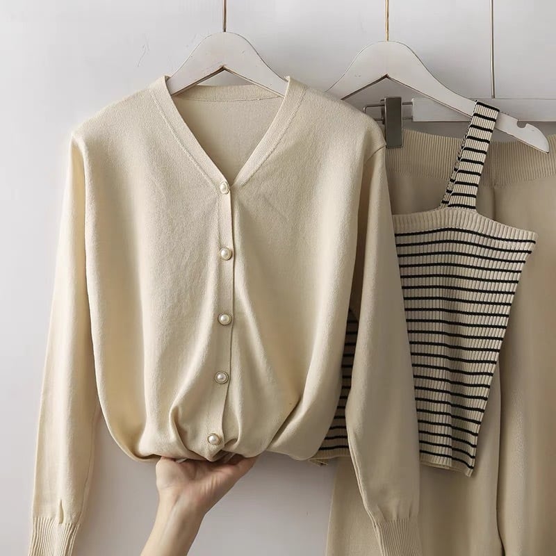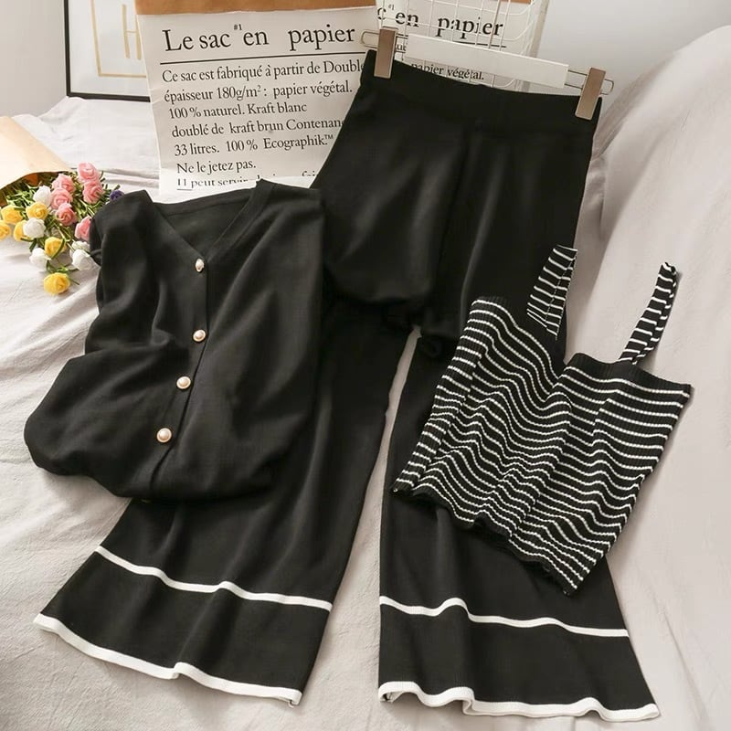 【set】お得3点セットニットキャミソールxカーディガンxワイドパンツ2色 HX8220