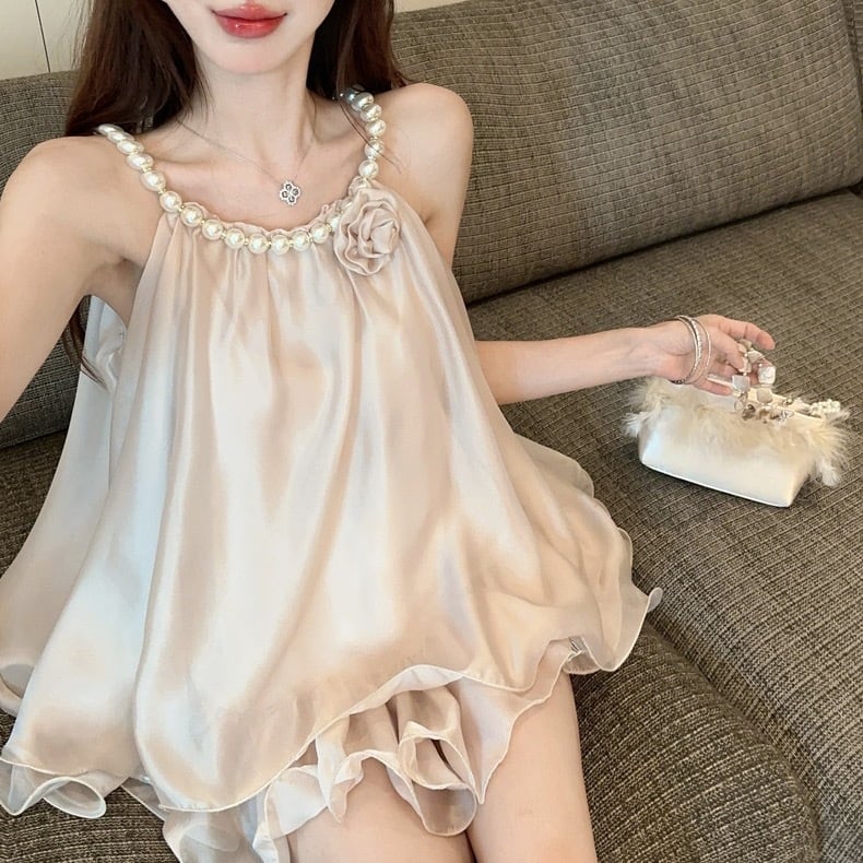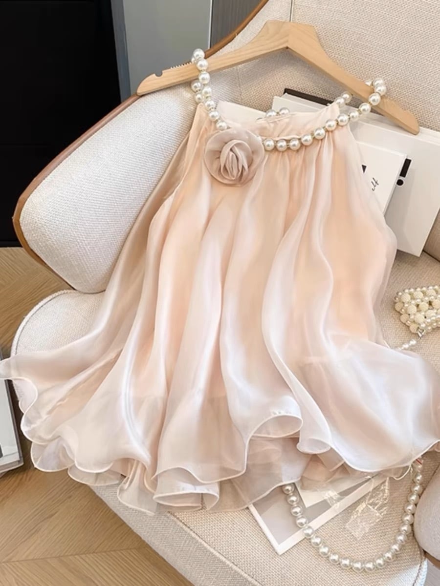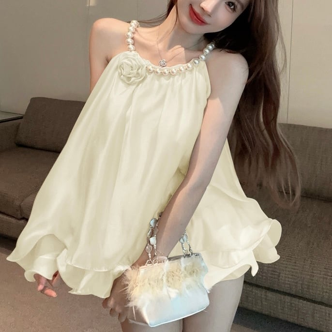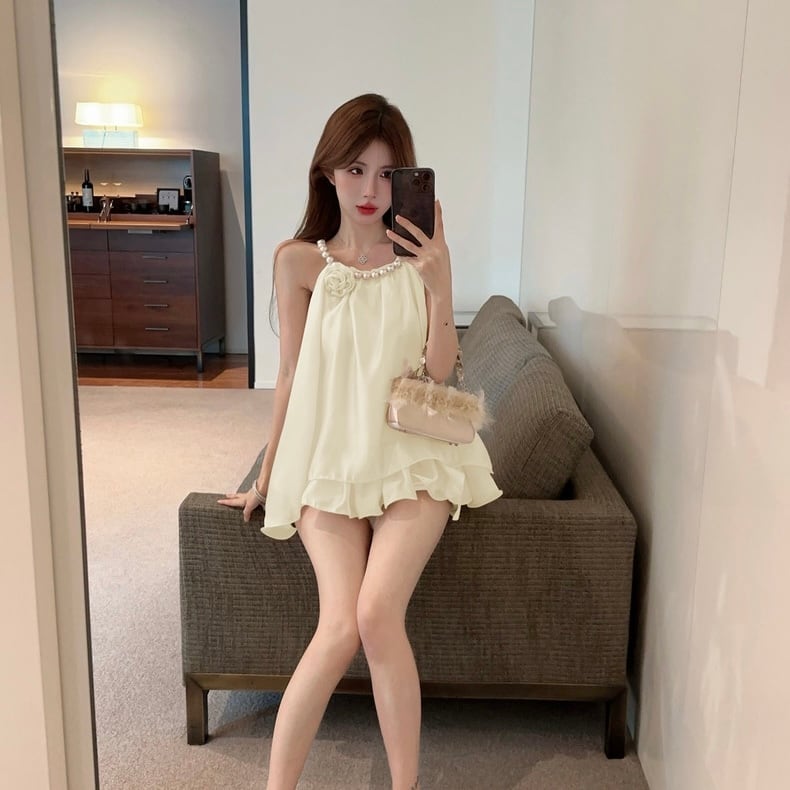 【tops】パールホルターネックトップス2色 HX8222